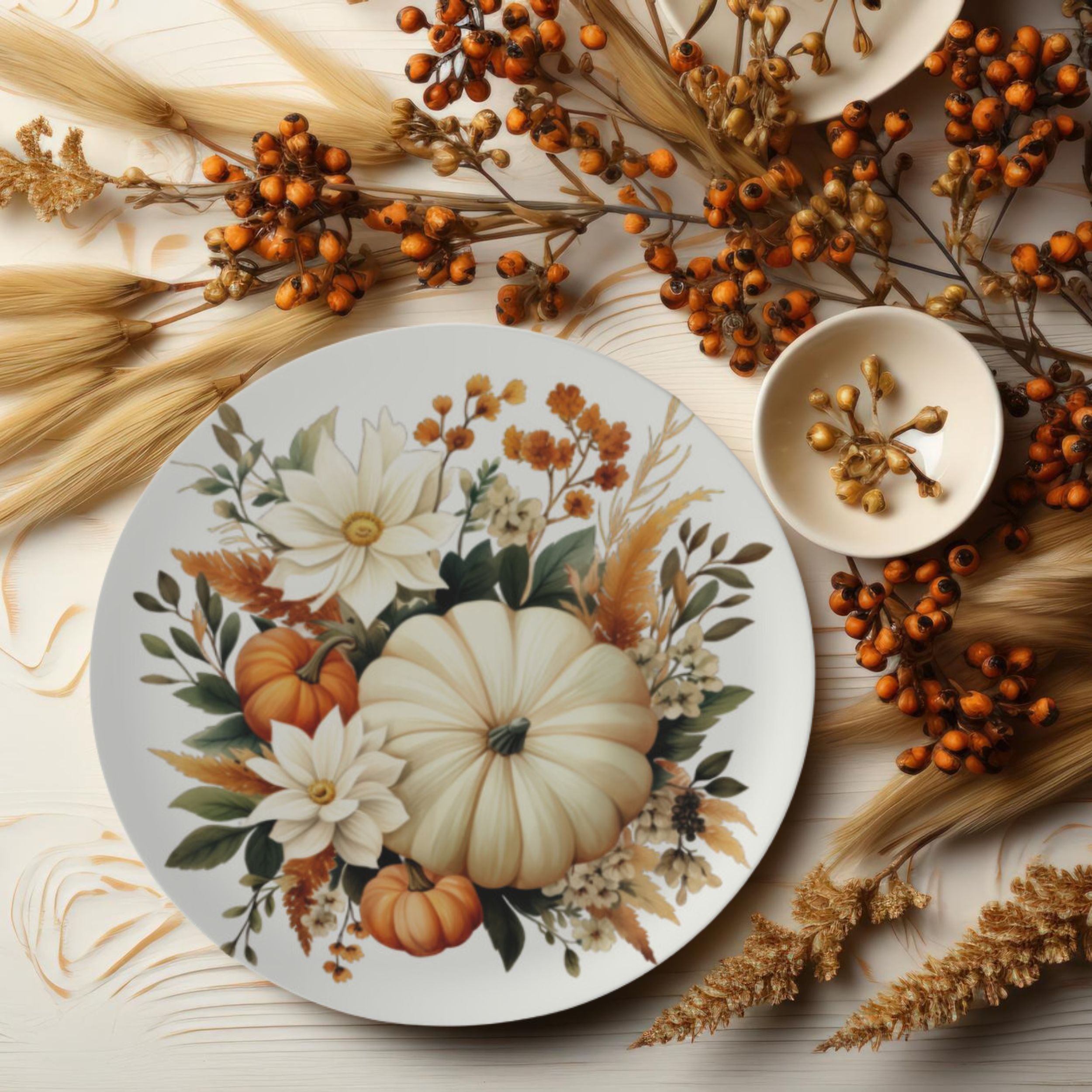 Orange and Gold Leaf Bone China Plate