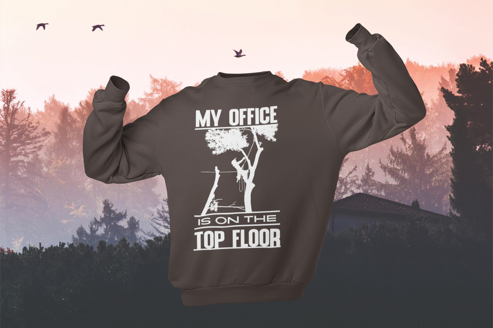 Climb to new heights with the Men's Arborist T-shirt and show off your love of the tree-lined office life! Featuring the bold statement "My office is on the top floor," this adventurous tee is sure to get you in the spirit of taking risks and conquering the highest heights. Soar to the top!