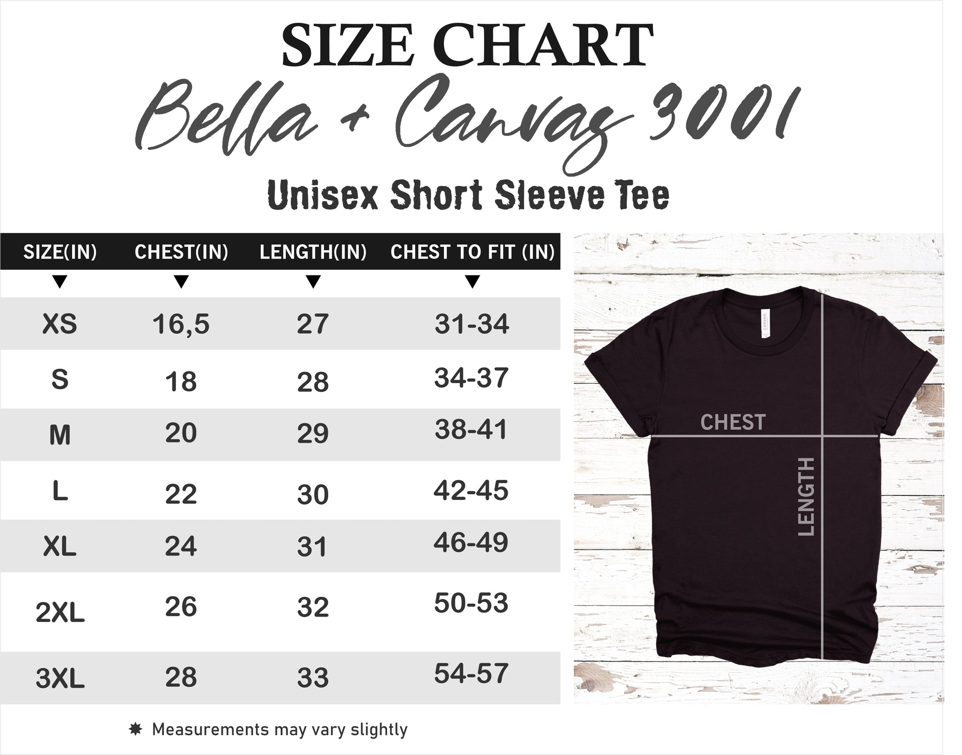 For specific measurements and examples, please consult our Size Charts available in the product photos.