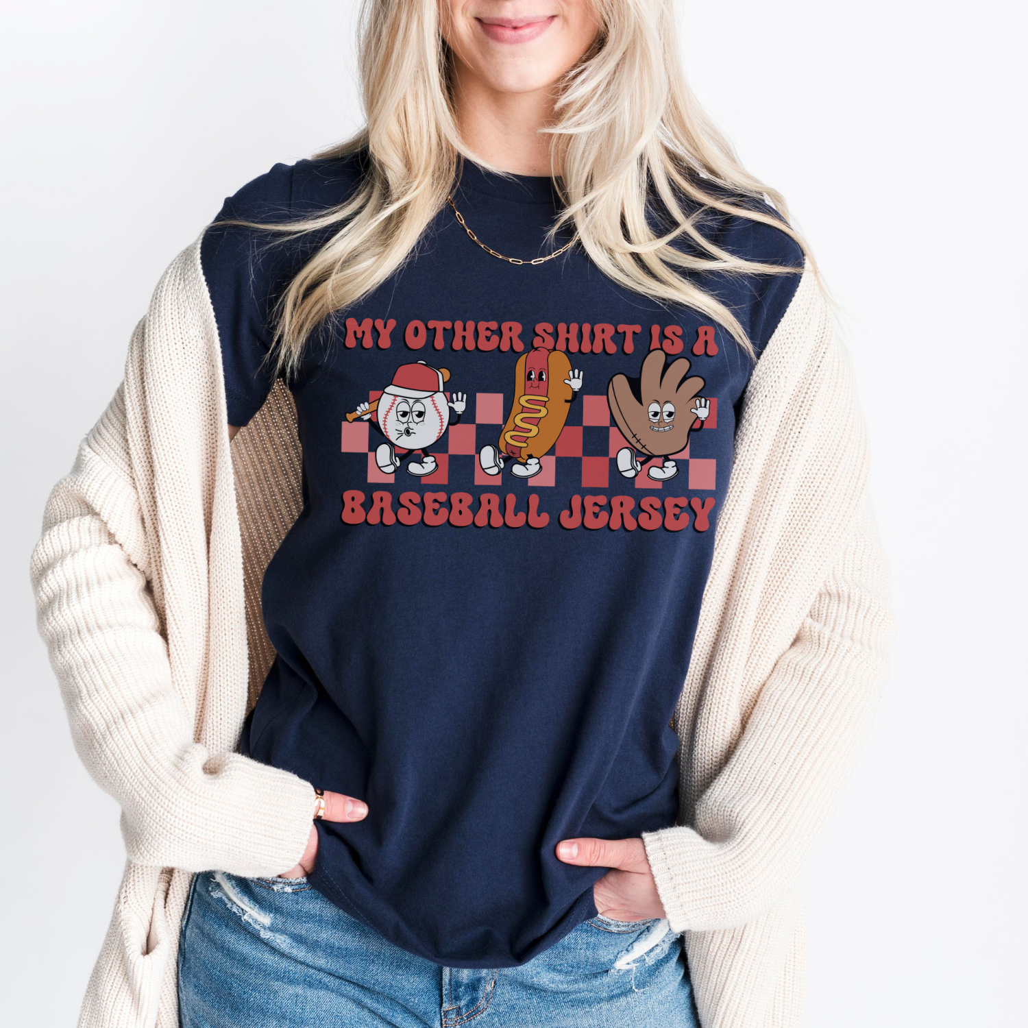 Embrace the cool vibes of the past with our Retro Graphic T-Shirt! Sporting the witty phrase "my other shirt is a baseball jersey," this tee lets you relive the charm of yesteryears. It's like a vintage ticket to show off your love for baseball in a playful way. Comfy, relaxed, and oozing retro appeal, this shirt is perfect for the next game, lazy weekends or laid-back outings with friends. Get ready to be the center of attention and have a blast with this classic gem in your wardrobe!
