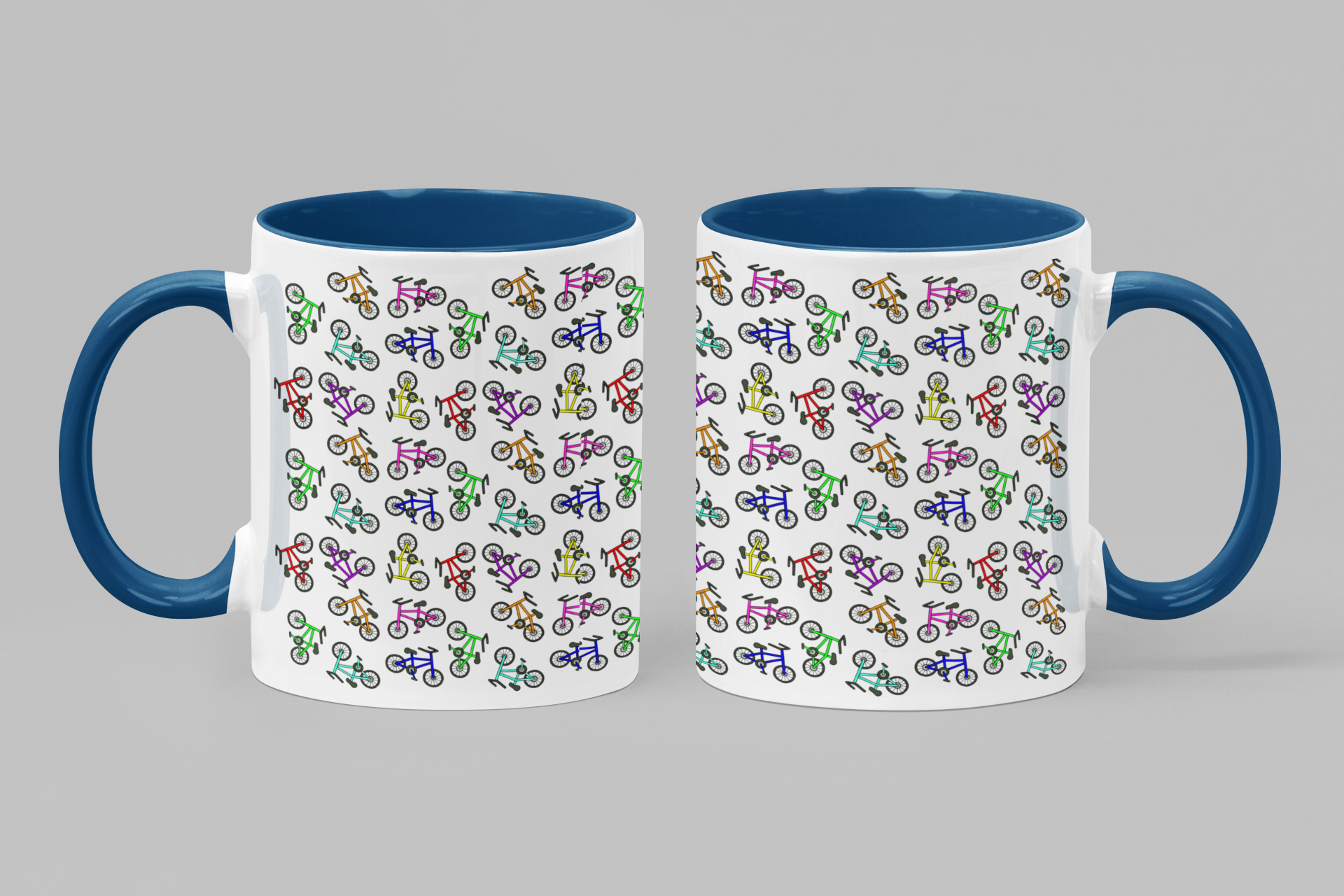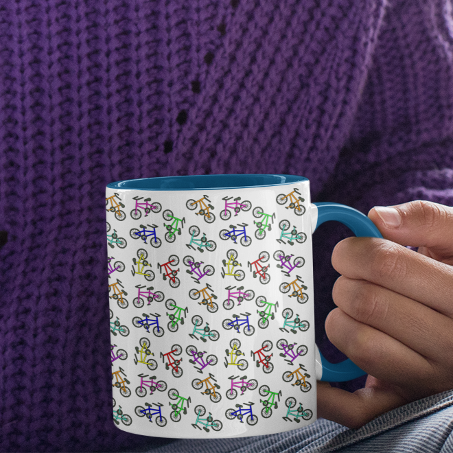 Pedal your way to joy with our Two-Toned Ceramic Coffee Mug featuring a captivating bicycle pattern. Crafted from high-quality ceramic, this 11-ounce mug celebrates the spirit of cycling. The charming bicycle motifs encircle the mug, inspiring feelings of adventure and freedom with every sip.