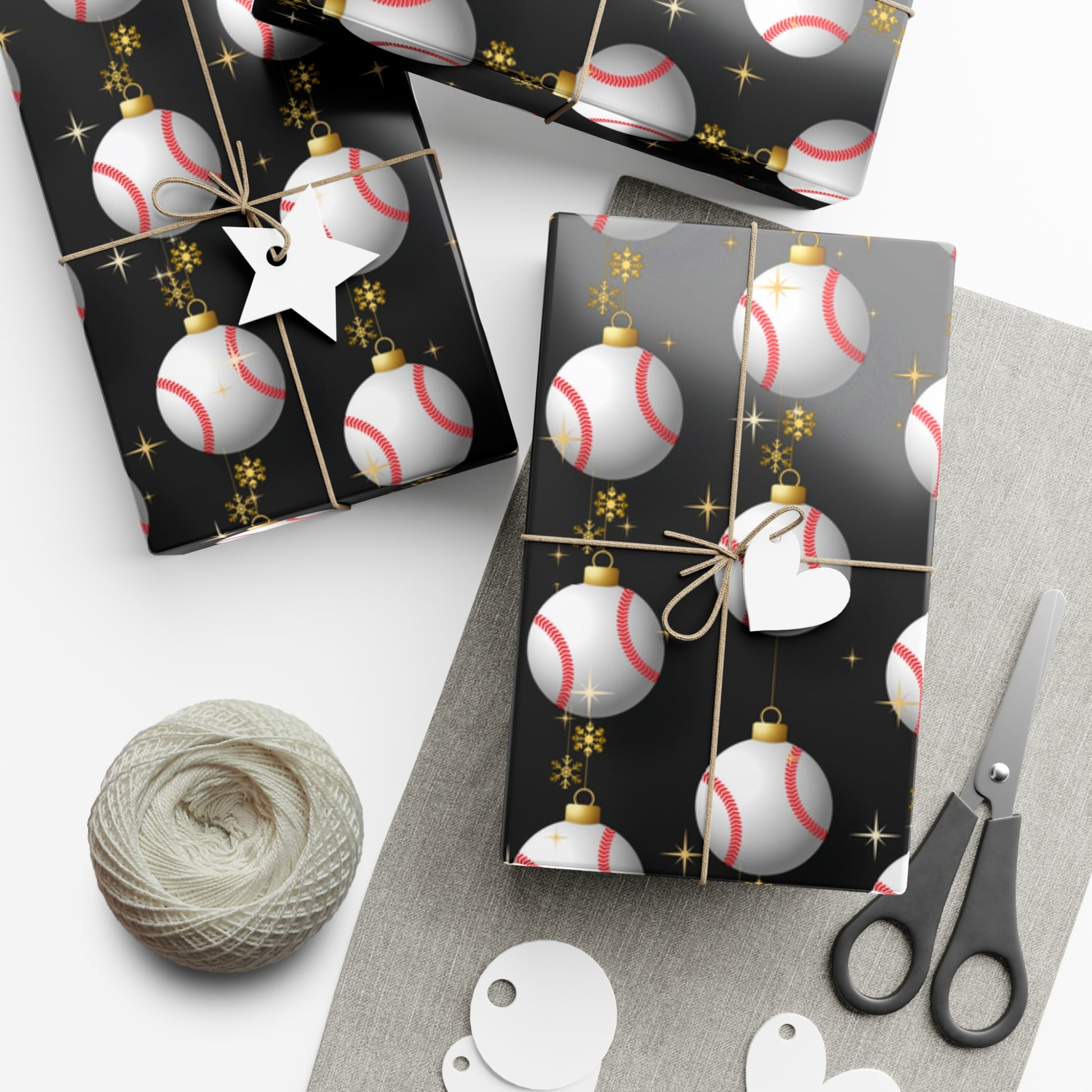 Hit a Home Run with Baseball-themed Christmas Wrapping Paper! Featuring baseball ornaments, twinkling golden stars, and delicate snowflakes, this paper is a grand slam for your presents.