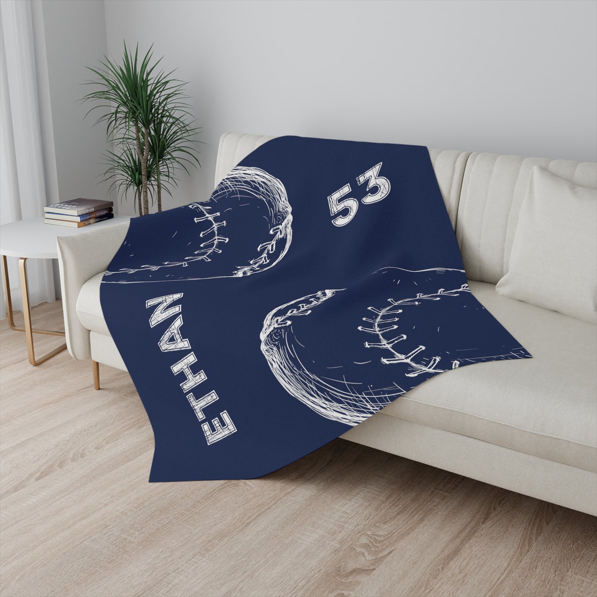 Get ready to gear up like a pro with our Personalized Baseball Blanket! Crafted for players and die-hard fans alike, this cozy essential is the ultimate tribute to America's favorite pastime. Customize it with your name and jersey number and choose from 15 vibrant colors to showcase your team pride. Featuring two baseball outlines at diagonal corners, it's a must-have addition to any player's dugout or fan's den. Whether you're warming up for the big game or winding down after a victorious season, this blanket is a grand slam gift that'll keep you cozy all year round!