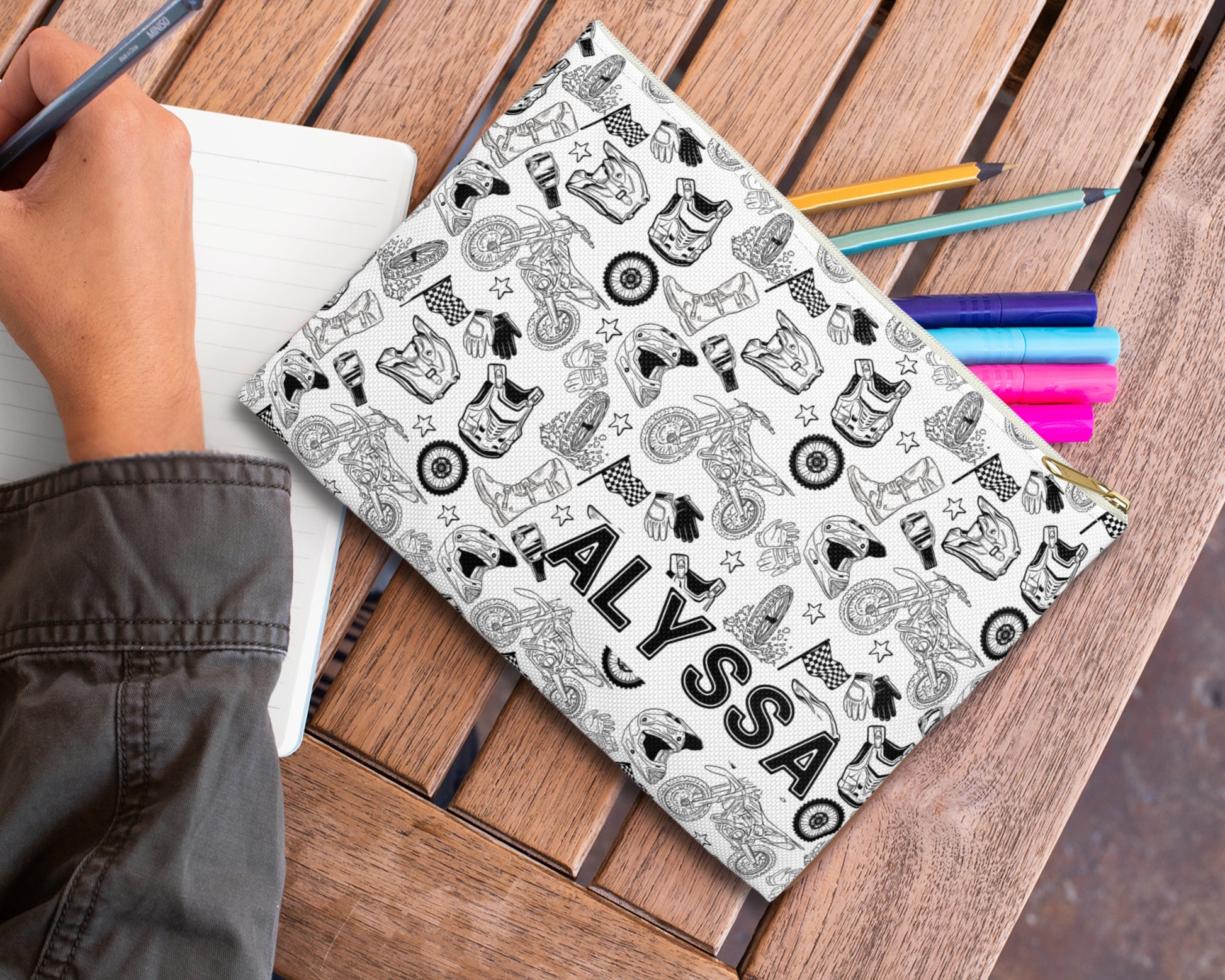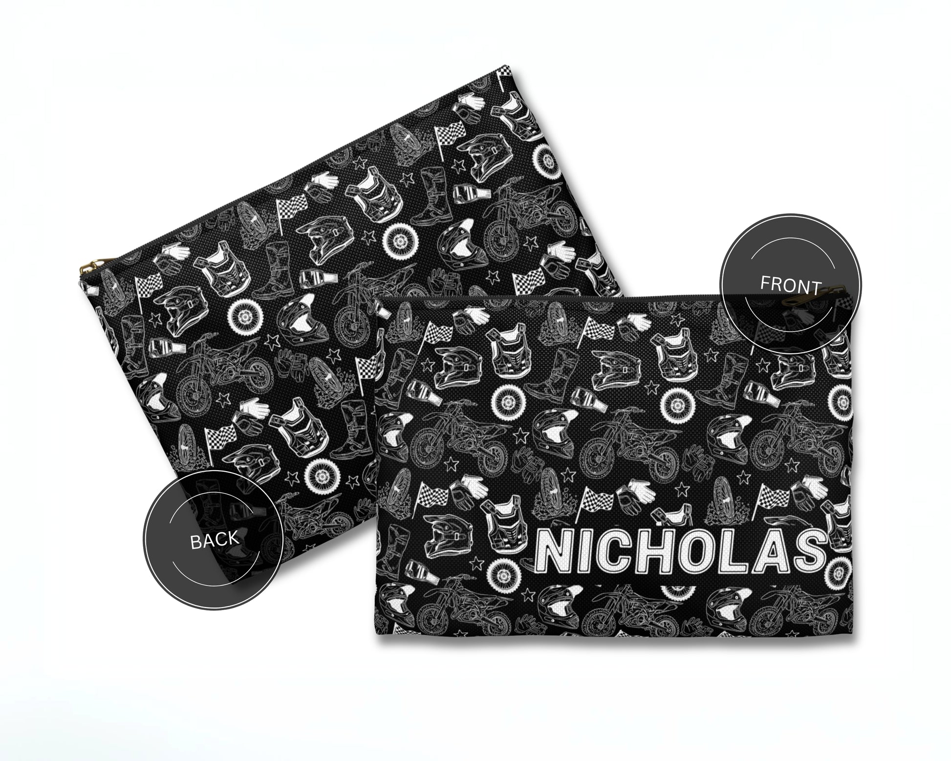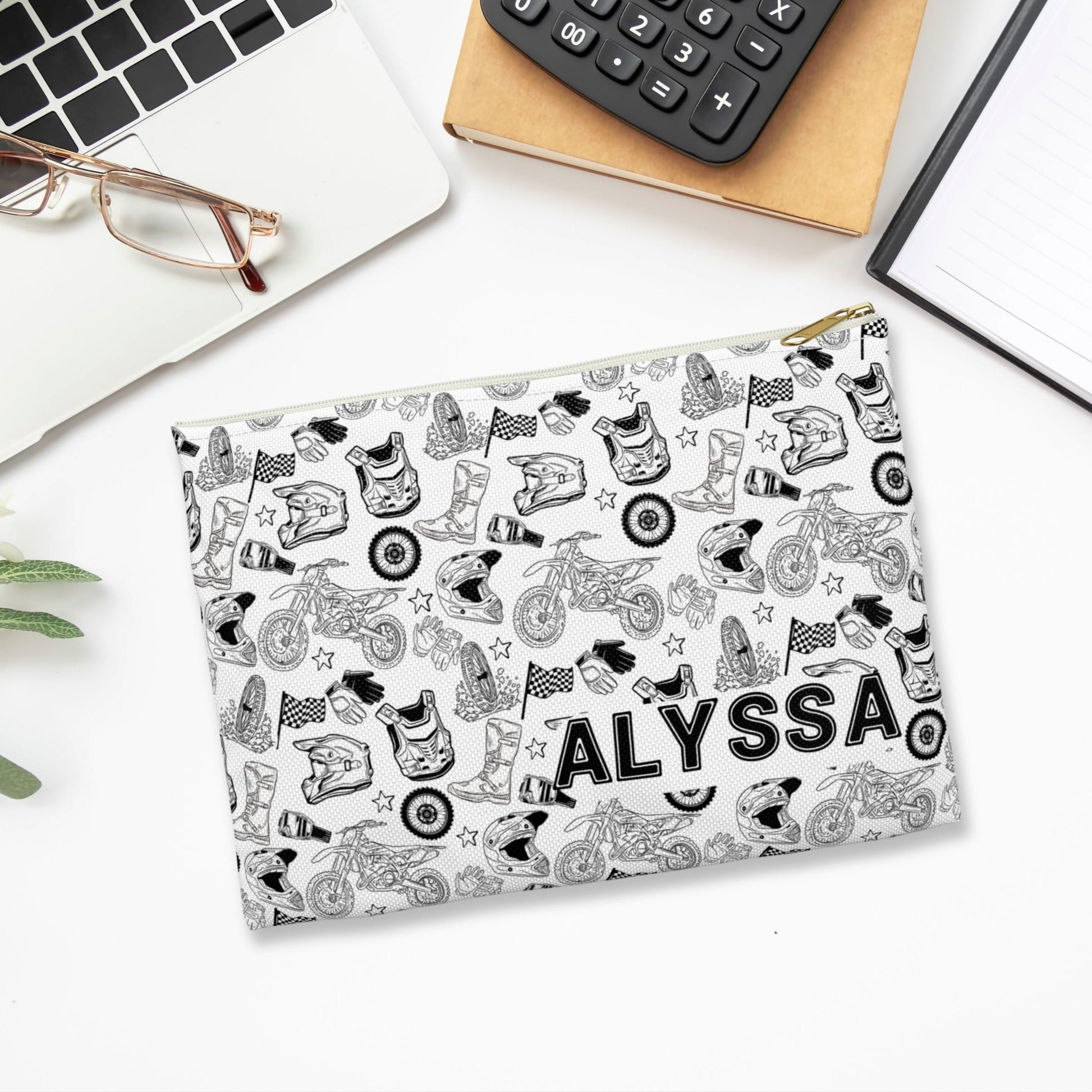 Rev up your routine with our personalized dirt bike accessory case, perfect for organizing school supplies, chargers, or everyday essentials. Built for fans of motocross, racing, and all things two wheels, this versatile zipper pouch brings style and function together. Whether heading to class, packing for travel, or organizing gear at home, it’s a thoughtful gift for dirtbike riders, motocross fans, or racing enthusiasts, and ideal for birthdays, holidays, back-to-school surprises, or team celebrations. Personalize it with a name or initials for a one-of-a-kind case they’ll be proud to carry on and off the track.