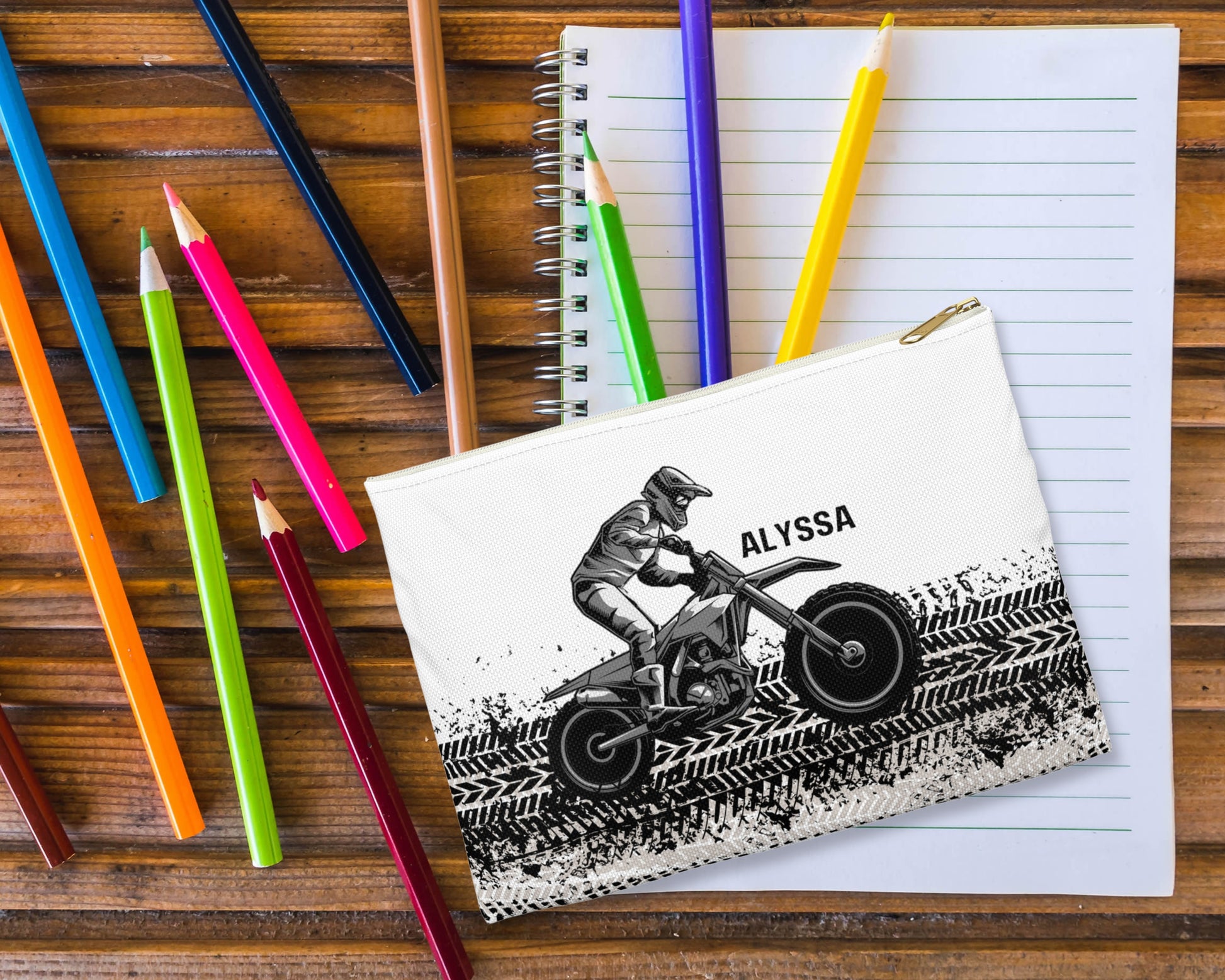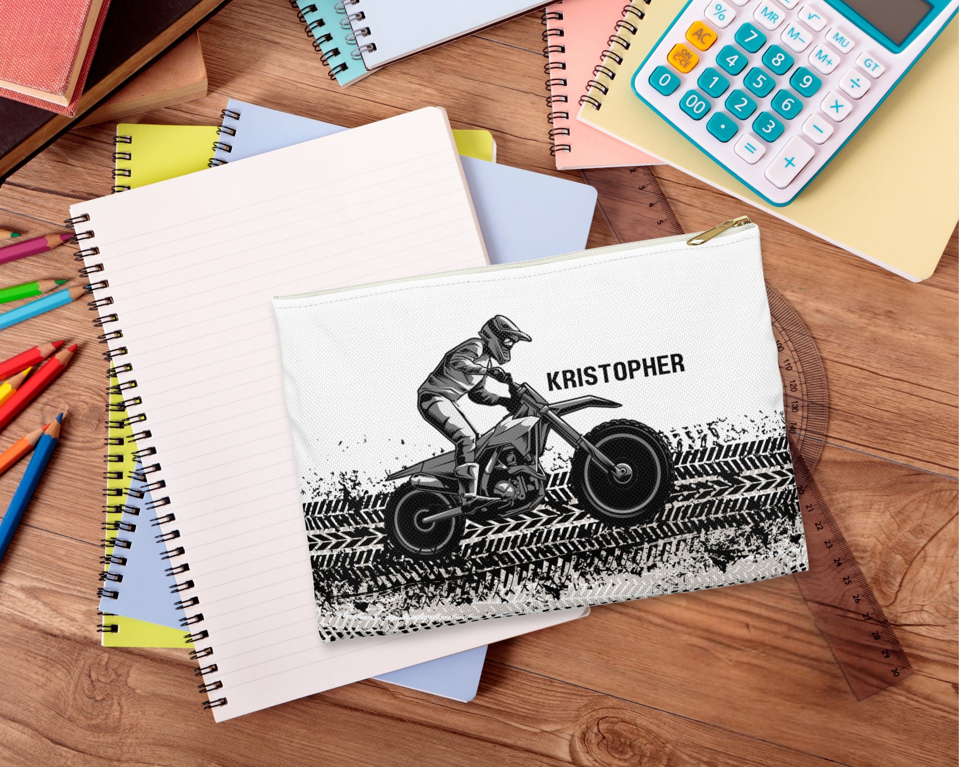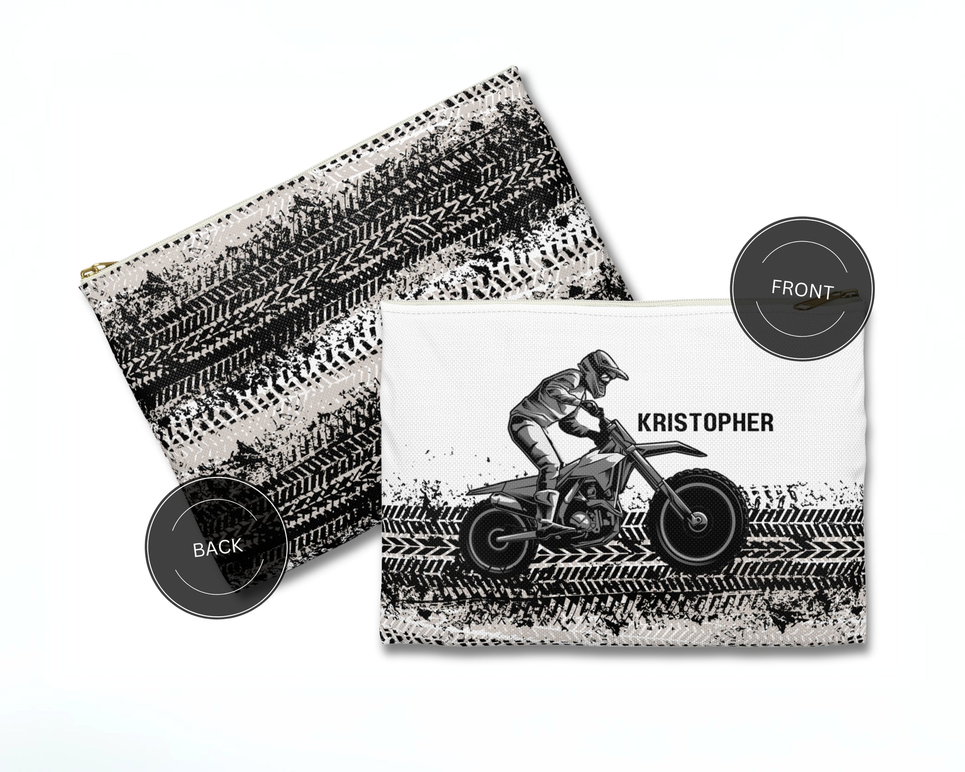 Rev up your routine with our personalized dirt bike accessory case, perfect for organizing school supplies, chargers, or everyday essentials. Built for fans of motocross, racing, and all things two wheels, this versatile zipper pouch brings style and function together. Whether heading to class, packing for travel, or organizing gear at home, it’s a thoughtful gift for dirtbike riders, motocross fans, or racing enthusiasts, and ideal for birthdays, holidays, back-to-school surprises, or team celebrations. Personalize it with a name or initials for a one-of-a-kind case they’ll be proud to carry on and off the track.