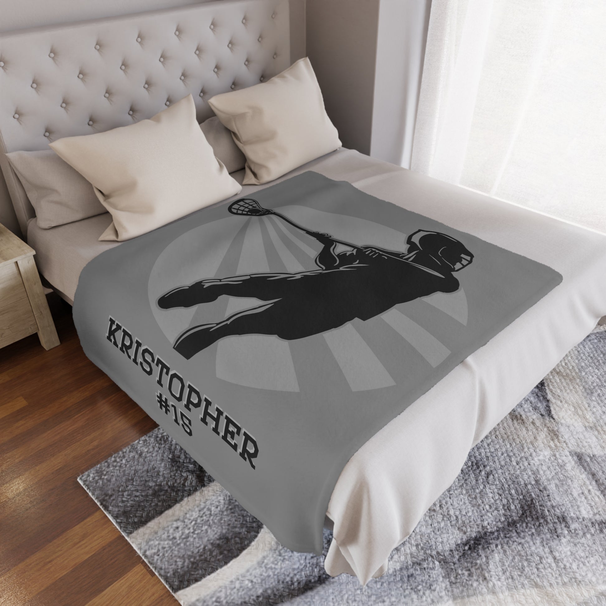 Score big with our personalized lacrosse blanket! Customize it with their name and number for a truly special touch. Whether they're cheering from the sidelines or dominating on the field themselves, this blanket is the ultimate gift for any lacrosse enthusiast. Perfect for birthdays, Christmas, or any occasion where you want to celebrate their passion for the game.