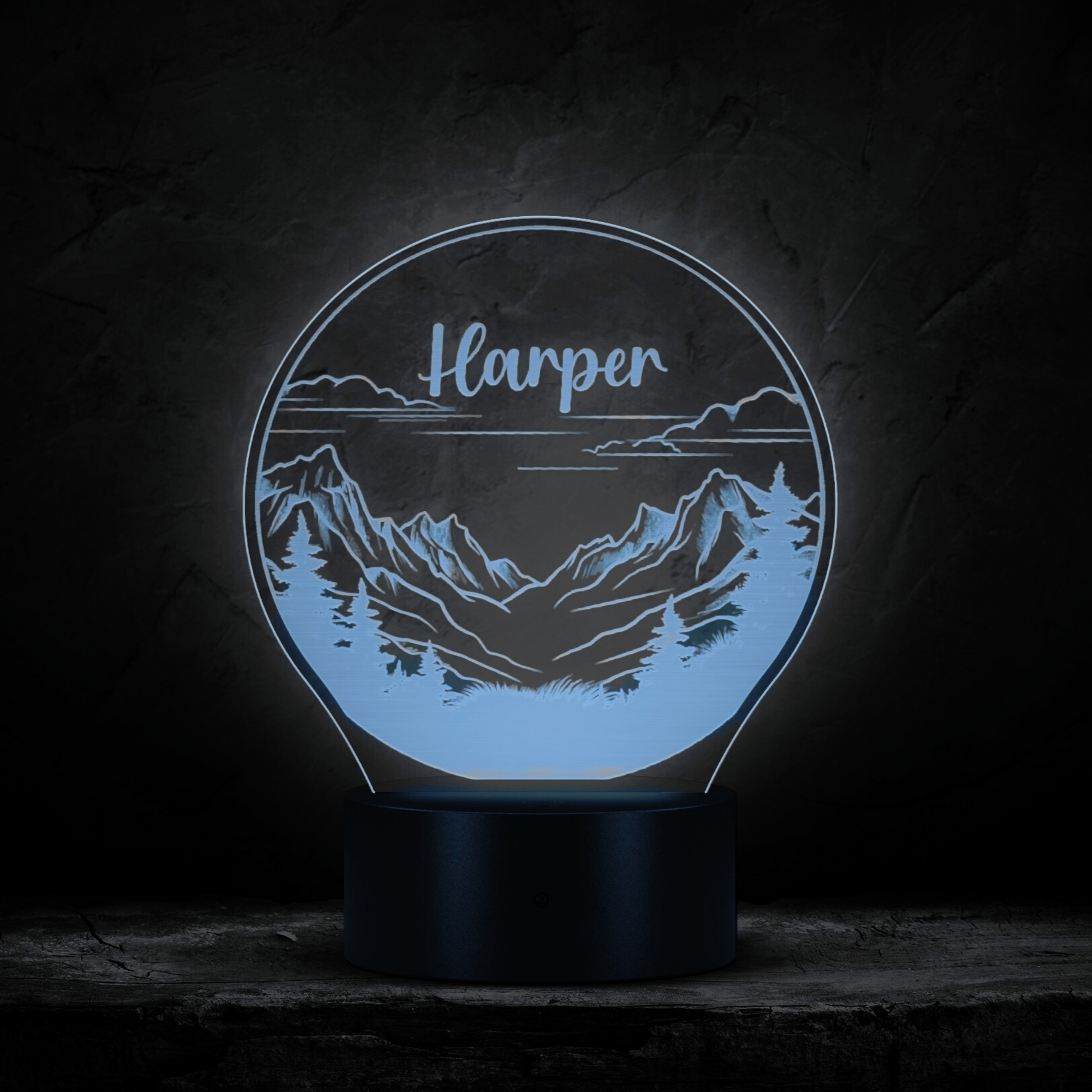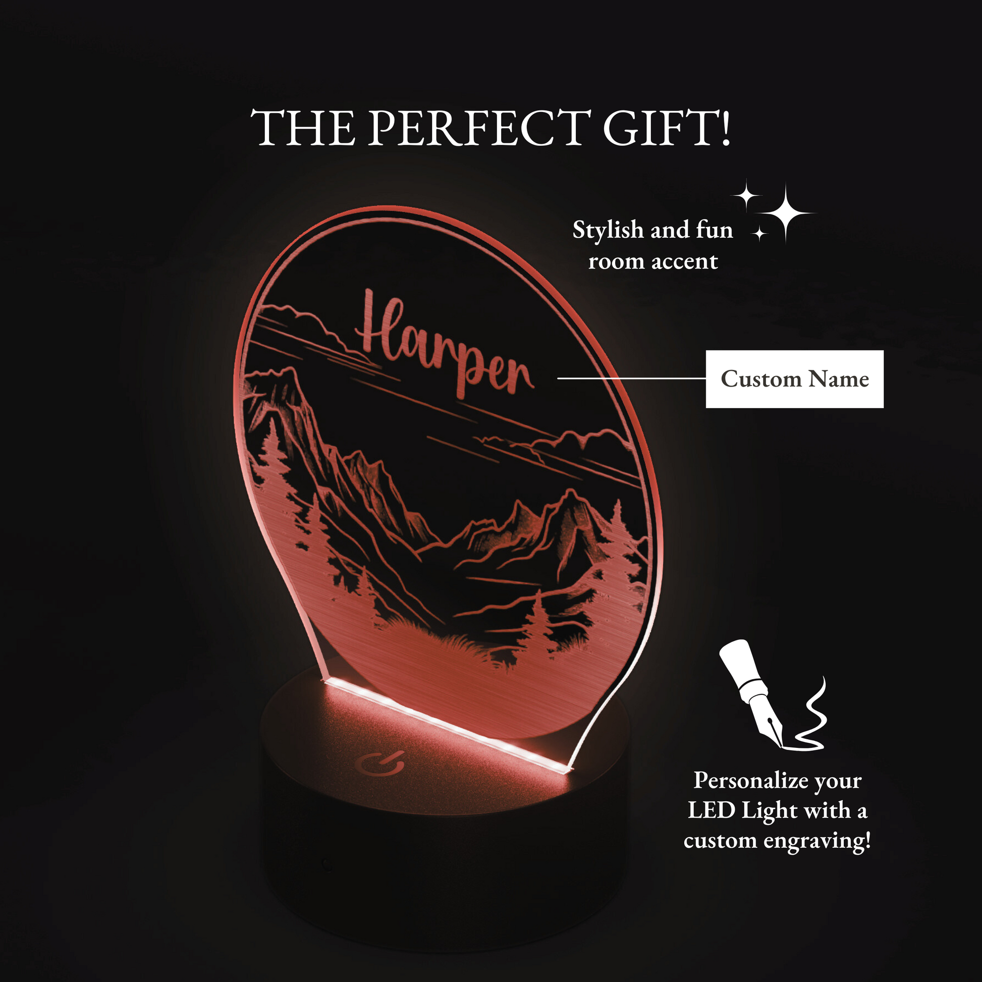 Reach new heights with our Mountains Personalized LED Light! Tailored for outdoor enthusiasts, this custom creation brings the majesty of the mountains to any room. Featuring a stunning mountain landscape design and controlled effortlessly with a remote, it's the perfect addition to your cabin retreat, mountain-themed nursery, or any room. Whether you're dreaming of summiting peaks or simply admiring the view, this LED light is sure to be a breathtaking addition to your space. Plus, it makes a fantastic gift for nature lovers and adventurers, bringing the beauty of the outdoors into their home.