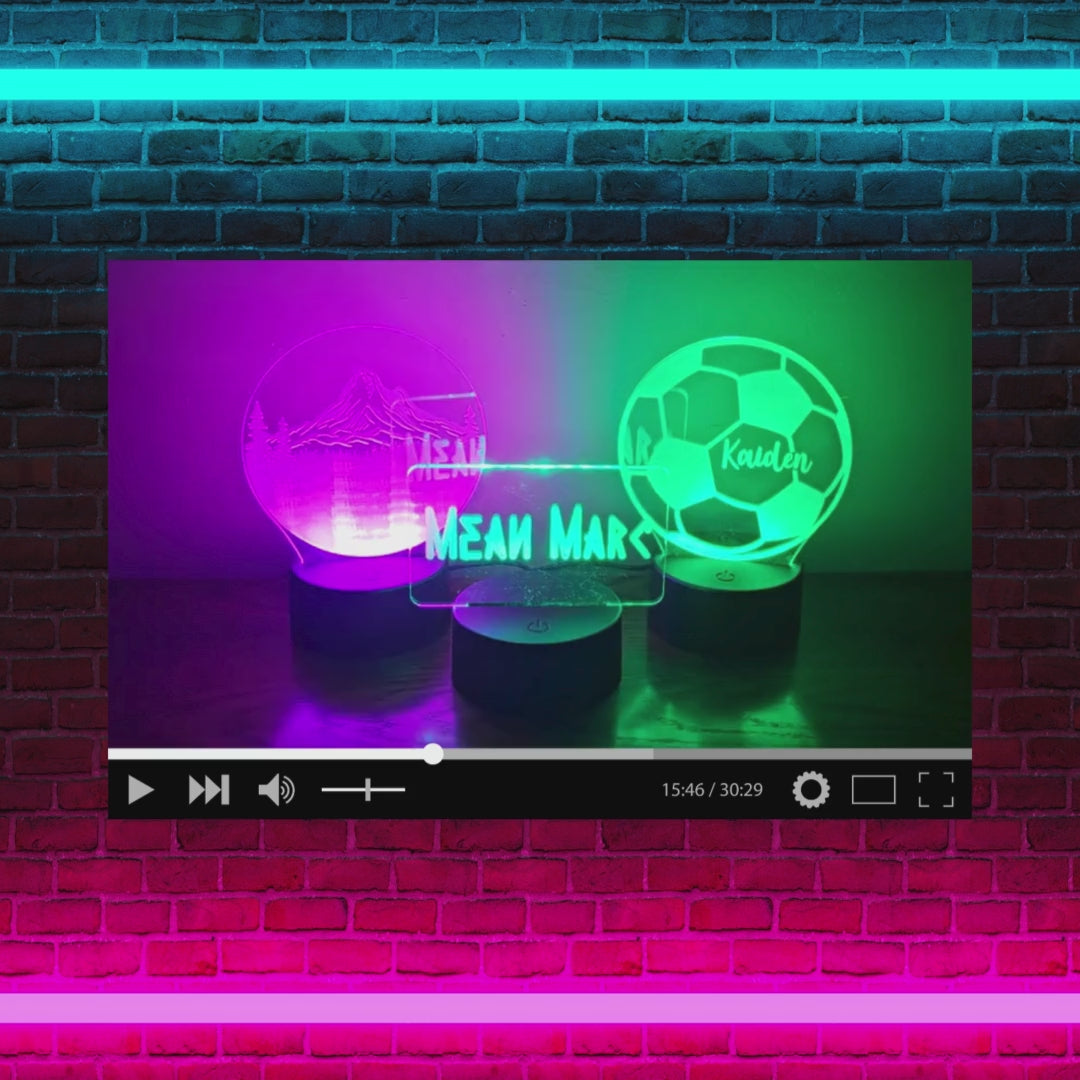 Transform your space with the captivating glow of our laser-etched acrylic light.