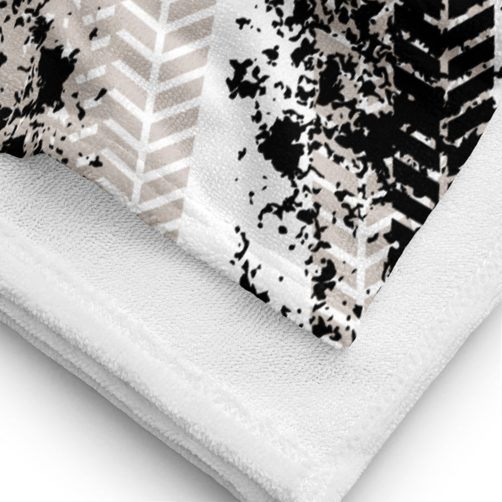 The front side, where the custom print is applied, has a soft and smooth polyester finish, which differs slightly from the typical terry towel feel. The back side is made of cotton with the familiar terry texture, making it both soft and absorbent.