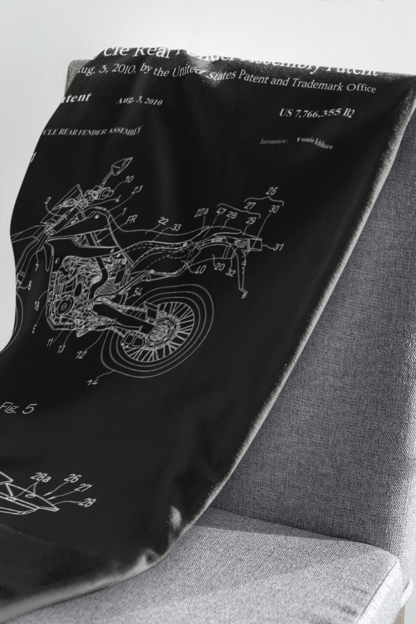 For motorcycle enthusiasts who admire design, our Dirtbike Motorcycle Rear Fender Assembly Patent Blanket is a stylish choice. It features the original patent illustration of this mechanical marvel. Whether you ride or appreciate engineering, this blanket embodies innovation. Crafted from quality materials for durability and comfort, it adds vintage charm and celebrates motorcycle ingenuity when displayed in your home, studio, or garage.