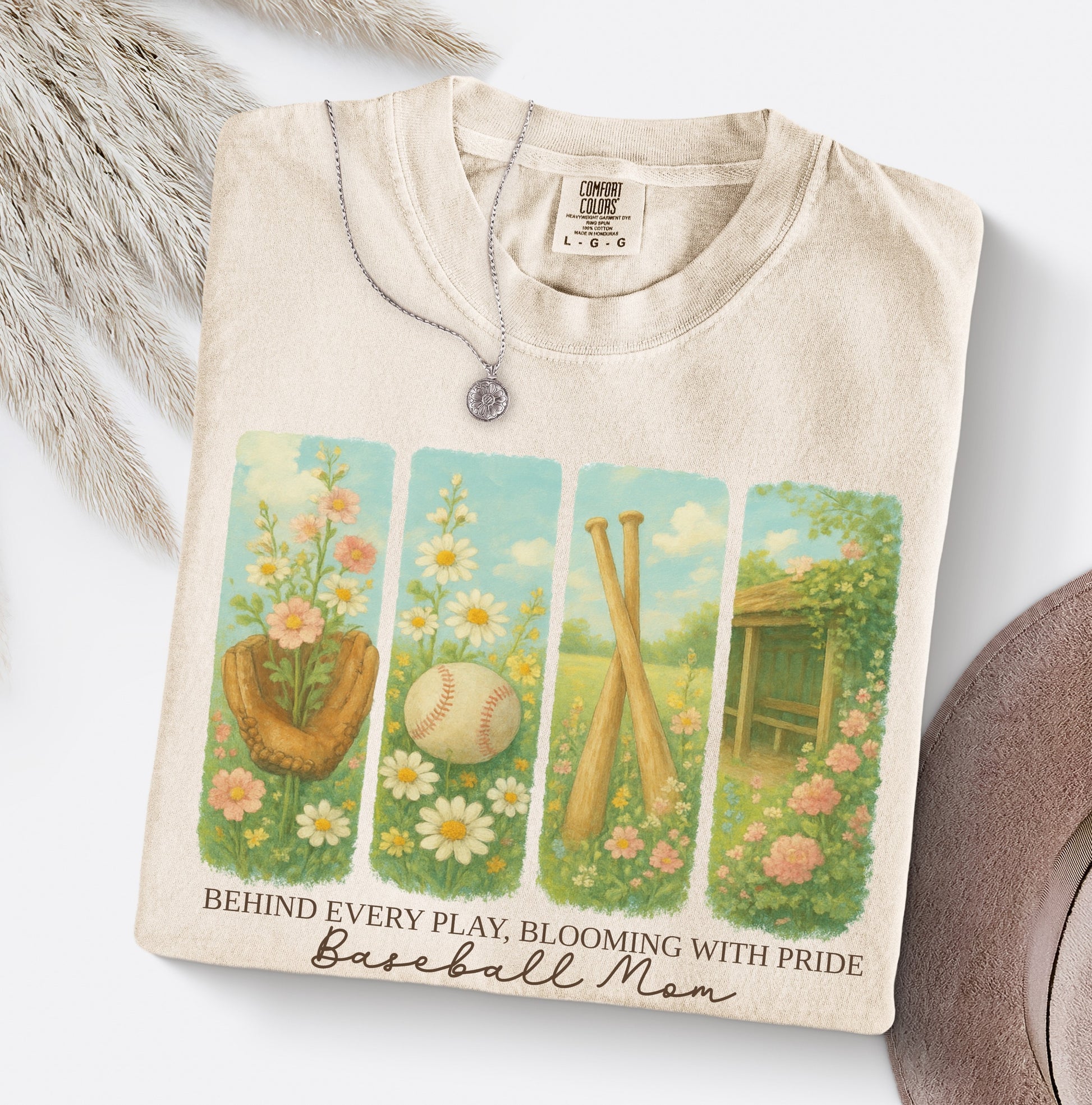 The long days, the packed coolers, the endless piles of laundry... somehow, it all grows into something beautiful. This tee is for the moms rooted in love and blooming with pride through every inning.