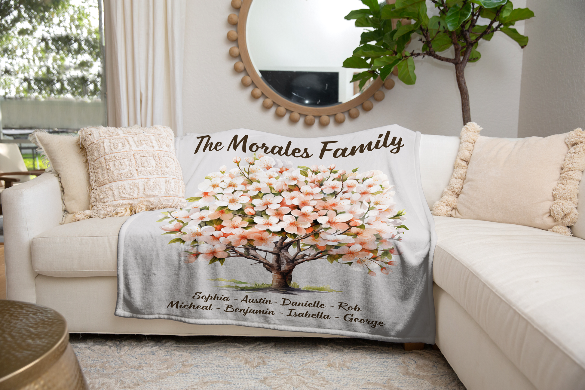 Celebrate your family's legacy with our Personalized Family Tree Blanket, available in your choice of a bold pink or peach flower tree design. Personalize this beautiful piece with your family name at the top and the names of your loved ones at the bottom. Made from high-quality, soft materials, this blanket offers warmth and comfort while serving as a treasured keepsake that honors generations of love. It’s the perfect gift for family members, creating an unforgettable heirloom that will be cherished for years to come.