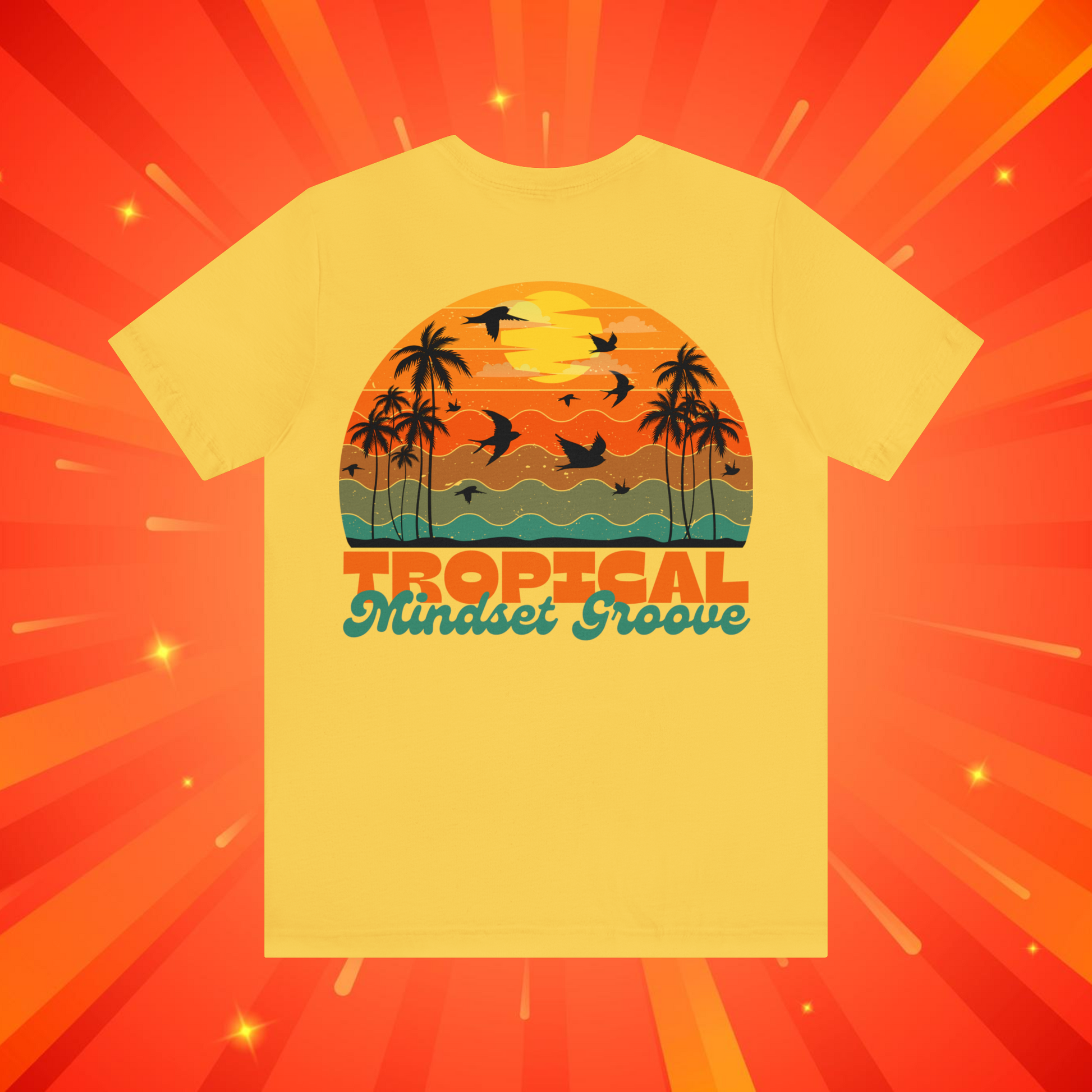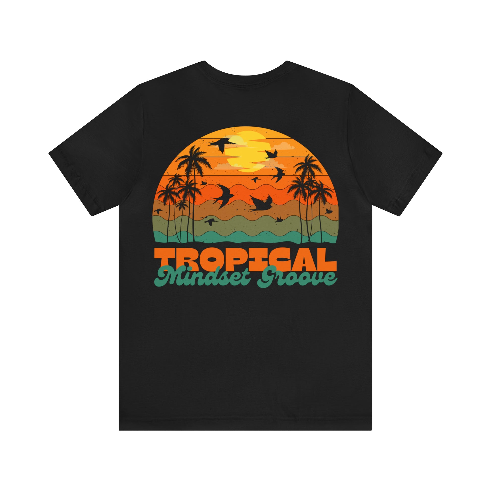 Unwind and let the "Tropical Mindset Vibe" t-shirt transport you to a serene beachside retreat. Imagine sinking your toes into the warm sand, surrounded by chairs perfectly positioned to soak in the breathtaking sunset. Feel the positive energy radiate from this tee as it encapsulates the essence of a tropical paradise. Let the calming ambiance and good vibes wash over you, reminding you to slow down and savor every moment. Embrace the tropical mindset and let your cares be carried away on the gentle waves of pure bliss.