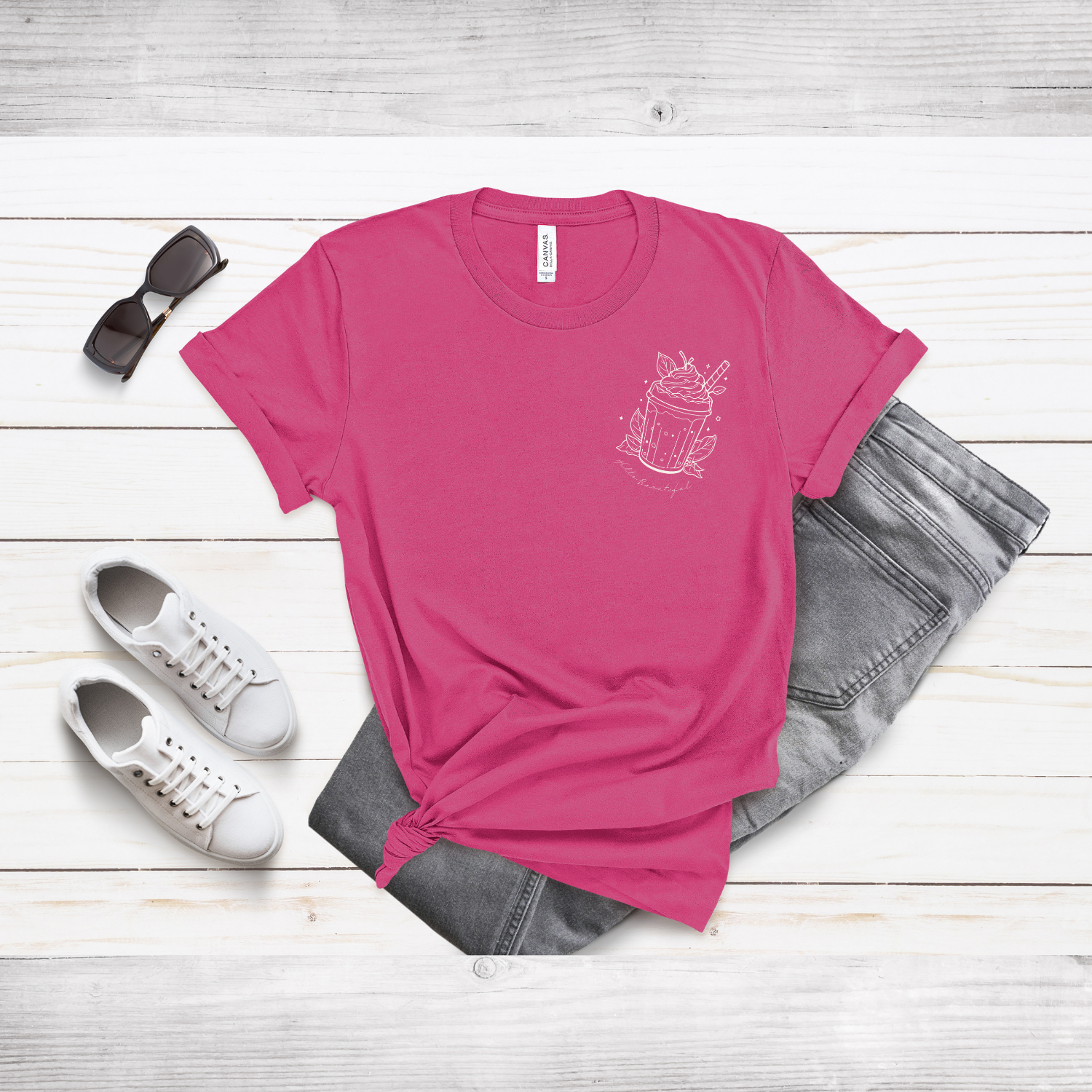 Say "Hello Beautiful" to the fall season with our charming pumpkin spice drink graphic t-shirt. The delicate design captures the essence of autumn with its warm colors and a steaming cup of your favorite fall drink. This shirt is a must-have for those who cherish the beauty of the season.