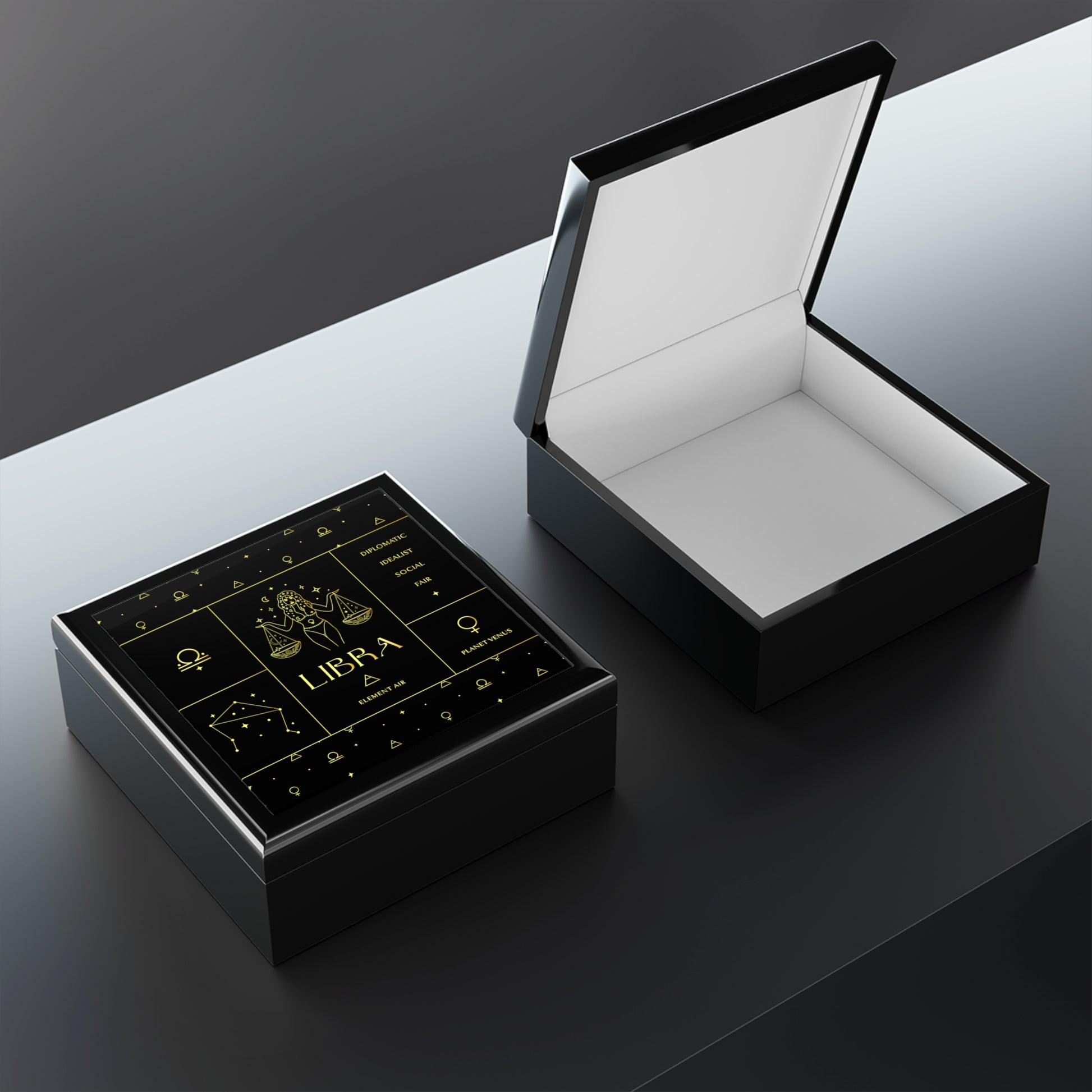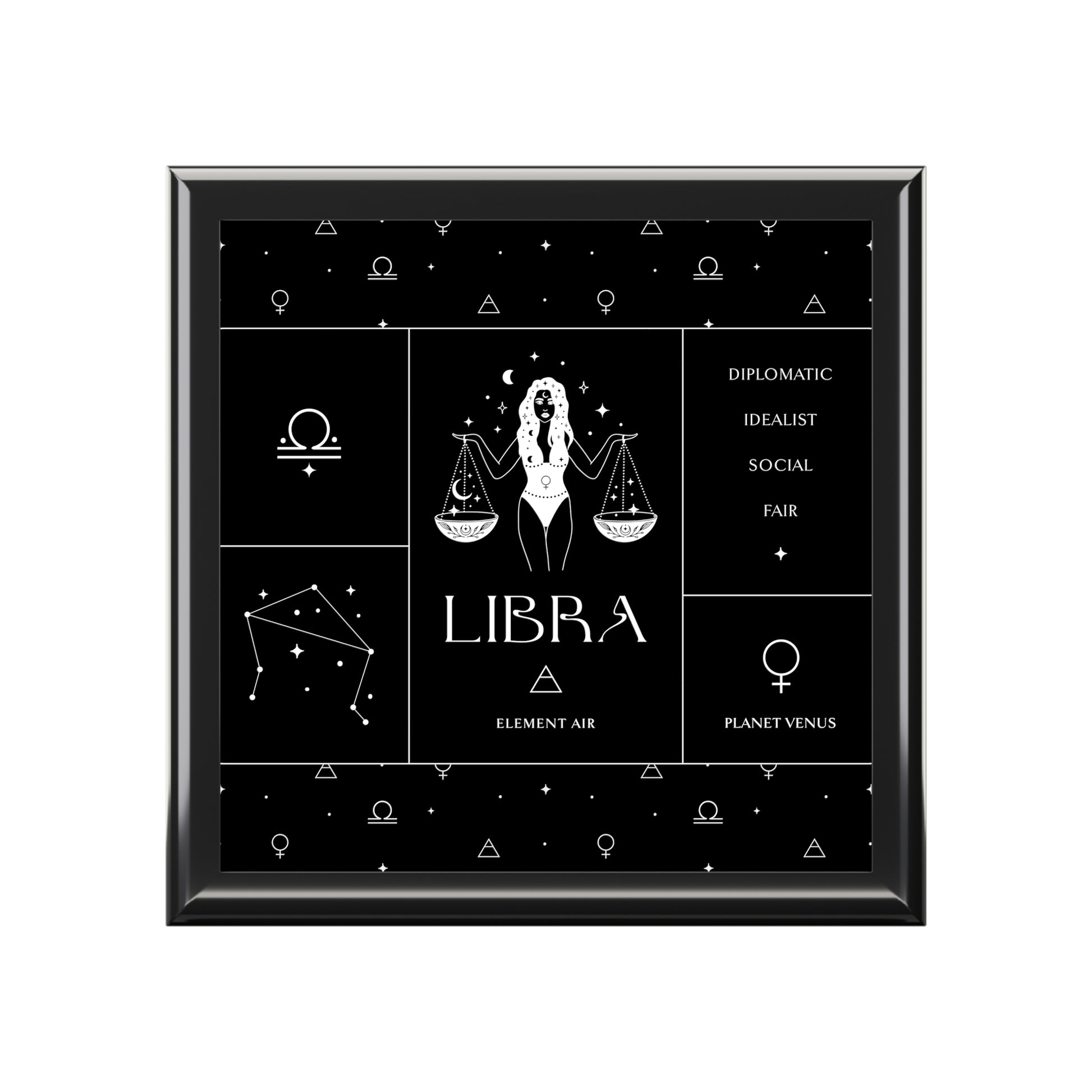 Achieve harmonious jewelry storage with the Libra Zodiac Jewelry/Valet Box. Designed for the diplomatic and artistic Libra, it's a beautiful and functional gift that resonates with your sense of balance and beauty. Keep your jewelry collection both organized and aesthetically pleasing with this box.
