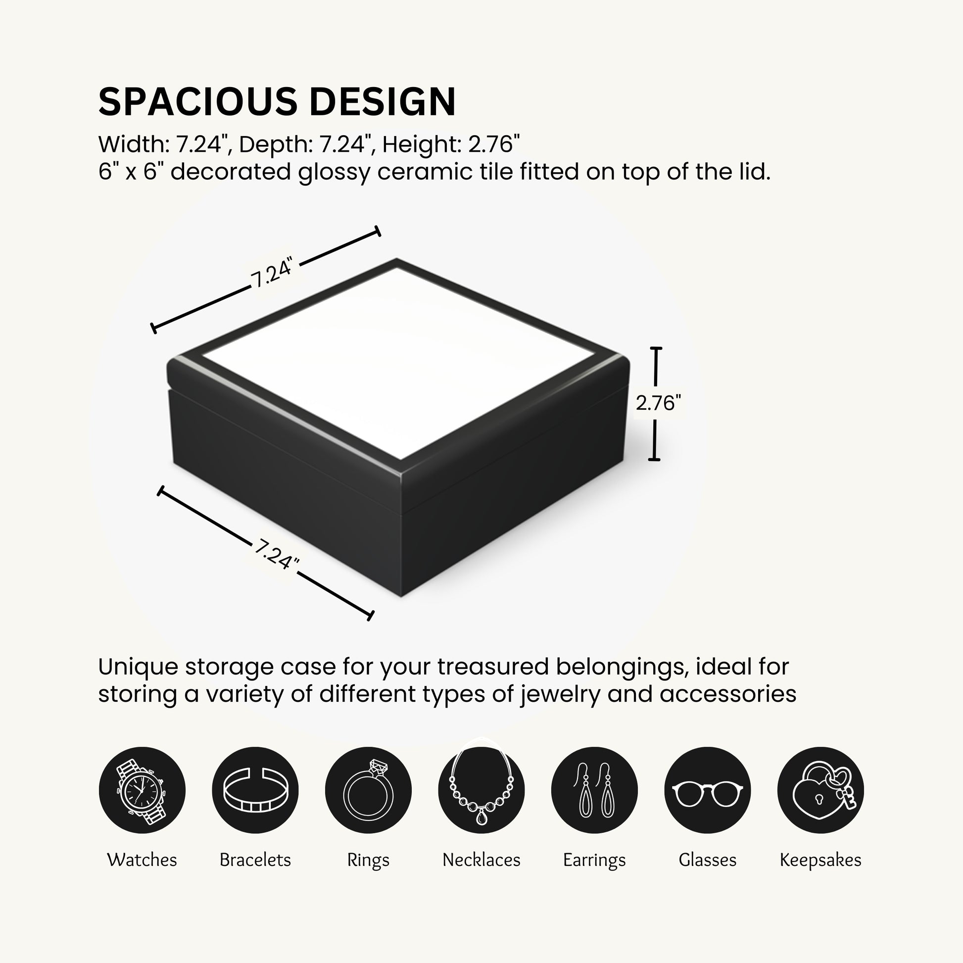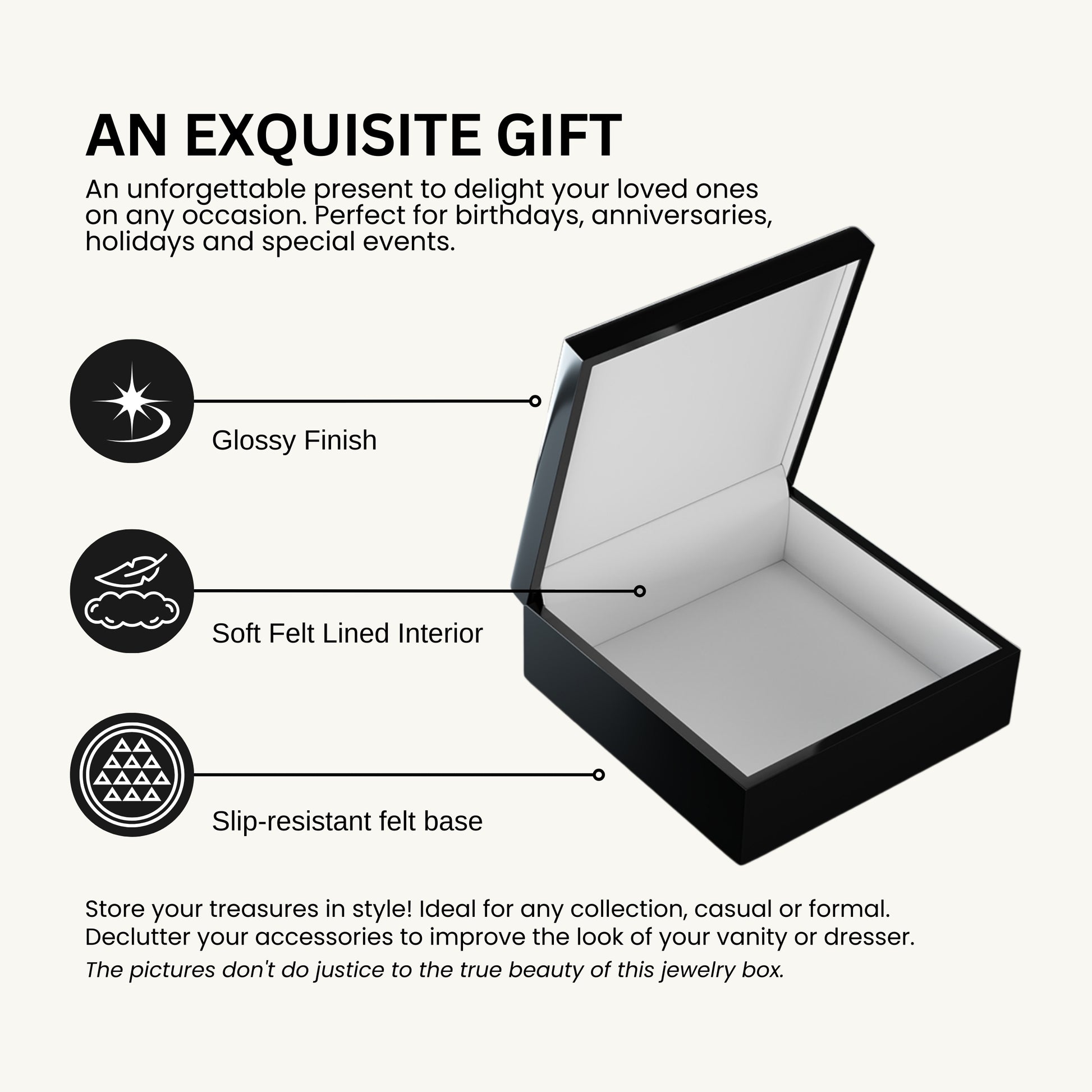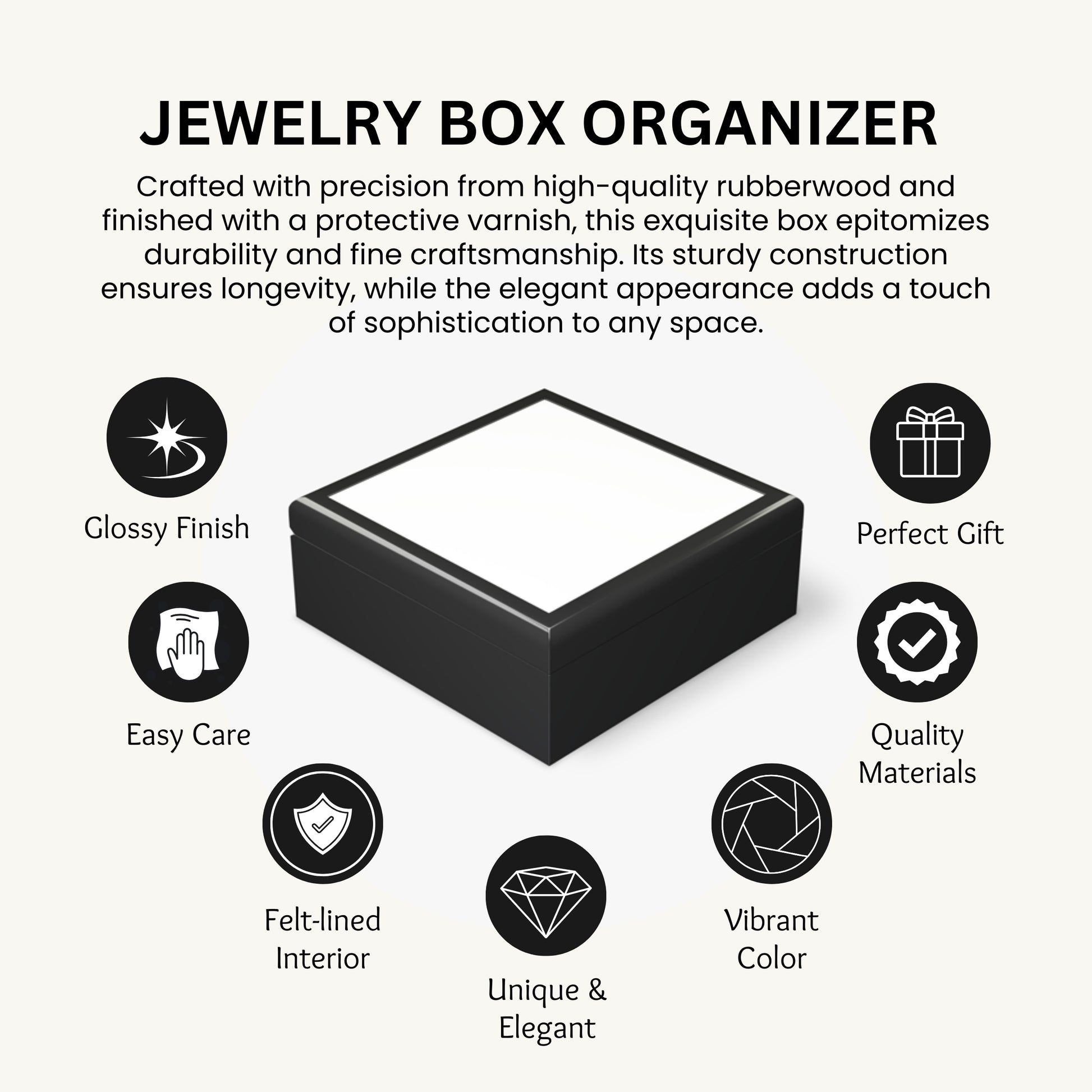 Keep your valuables safe in this beautifully crafted jewelry box, designed to impress with its sleek, glossy finish and custom charm.