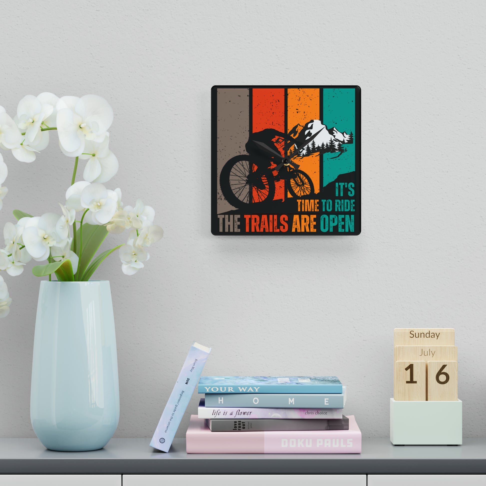 Surprise fellow riders and outdoor enthusiasts with this thoughtful gift that celebrates their adventurous spirit. Our wall clock serves as a daily reminder to seize the day and make the most of every biking opportunity. Elevate your space, infuse it with the excitement of biking, and let our captivating clock become a cherished companion on your journey to embrace the thrill of the trails.