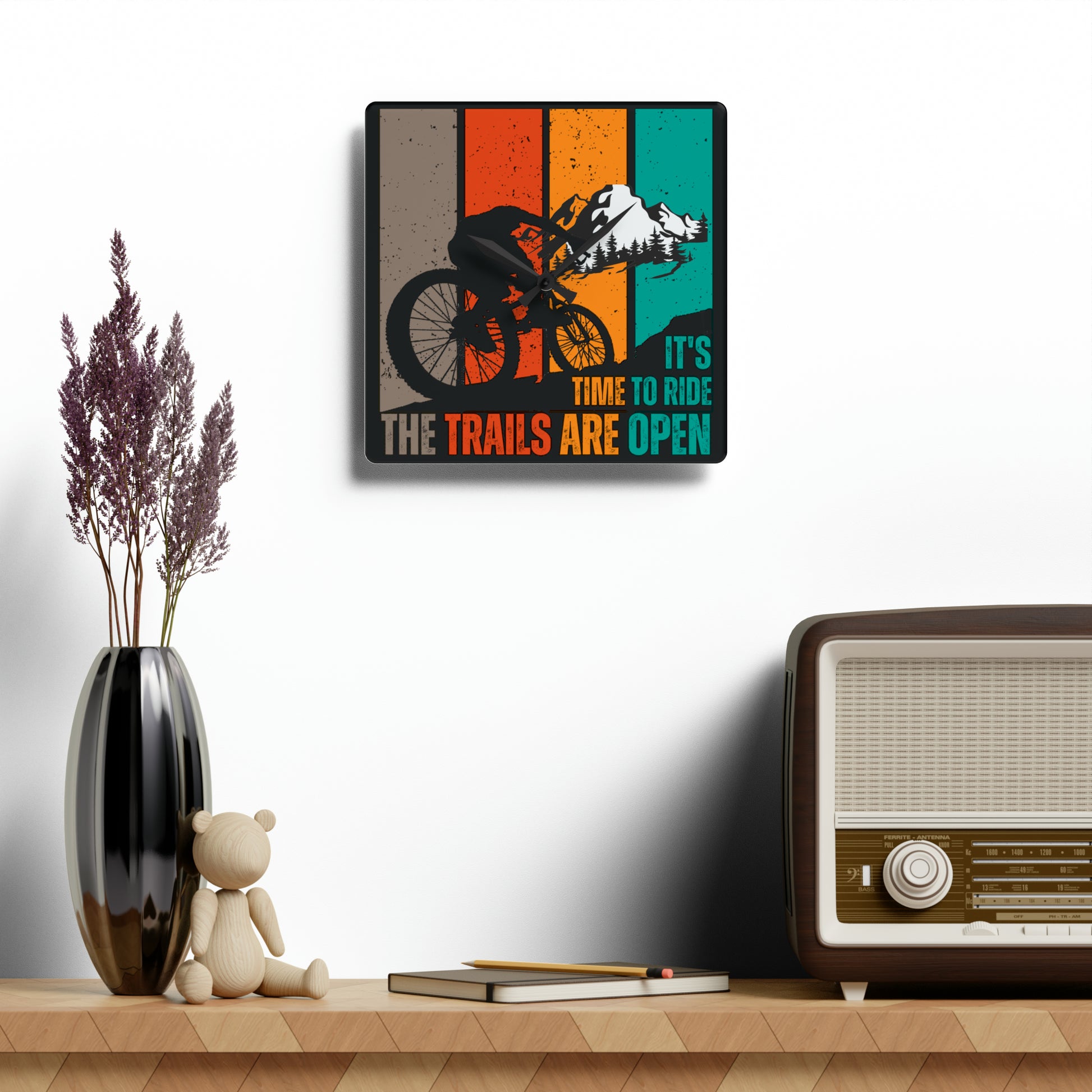 Embrace the spirit of adventure with our captivating "It's time to ride, the trails are open" wall clock. Designed with meticulous attention to detail, this sleek and modern timepiece serves as a constant reminder to seize the day, explore the great outdoors, and embark on thrilling biking escapades.