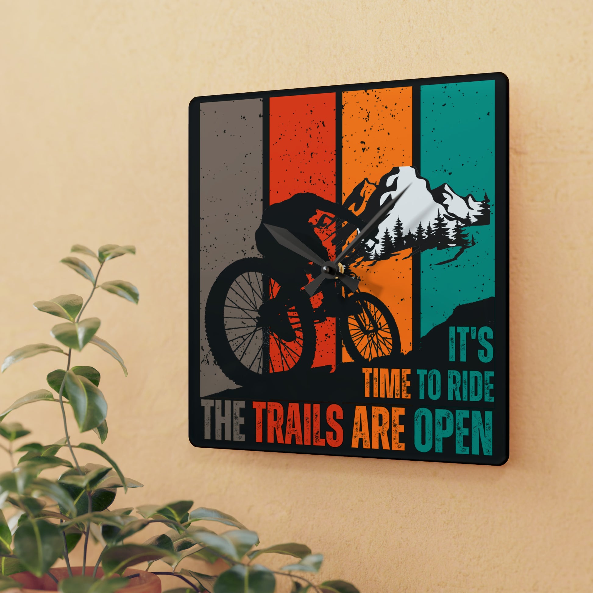 Mountain Bike Acrylic Wall Clock Gift for Cyclist Witty Retro Mountain Biking Gift for Son Trail Riding Clock Bike Rider Gift for Him