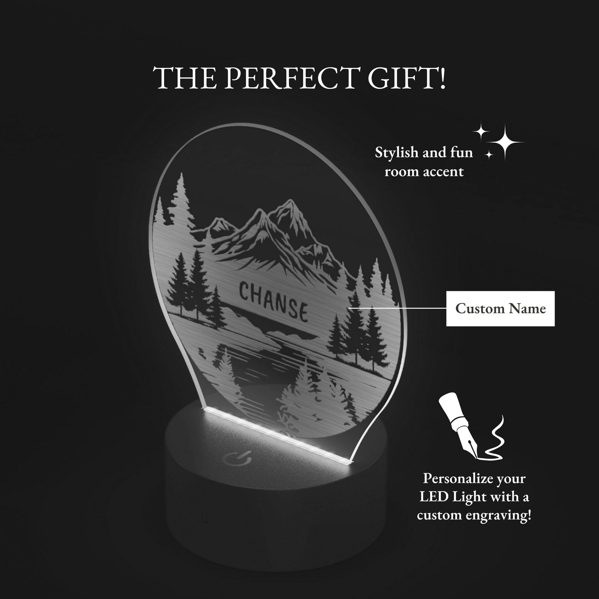 Reach new heights with our Mountains Personalized LED Light! Tailored for outdoor enthusiasts, this custom creation brings the majesty of the mountains to any room. Featuring a stunning mountain landscape design and controlled effortlessly with a remote, it's the perfect addition to your cabin retreat, mountain-themed nursery, or any room. Whether you're dreaming of summiting peaks or simply admiring the view, this LED light is sure to be a breathtaking addition to your space. Plus, it makes a fantastic gift for nature lovers and adventurers, bringing the beauty of the outdoors into their home.