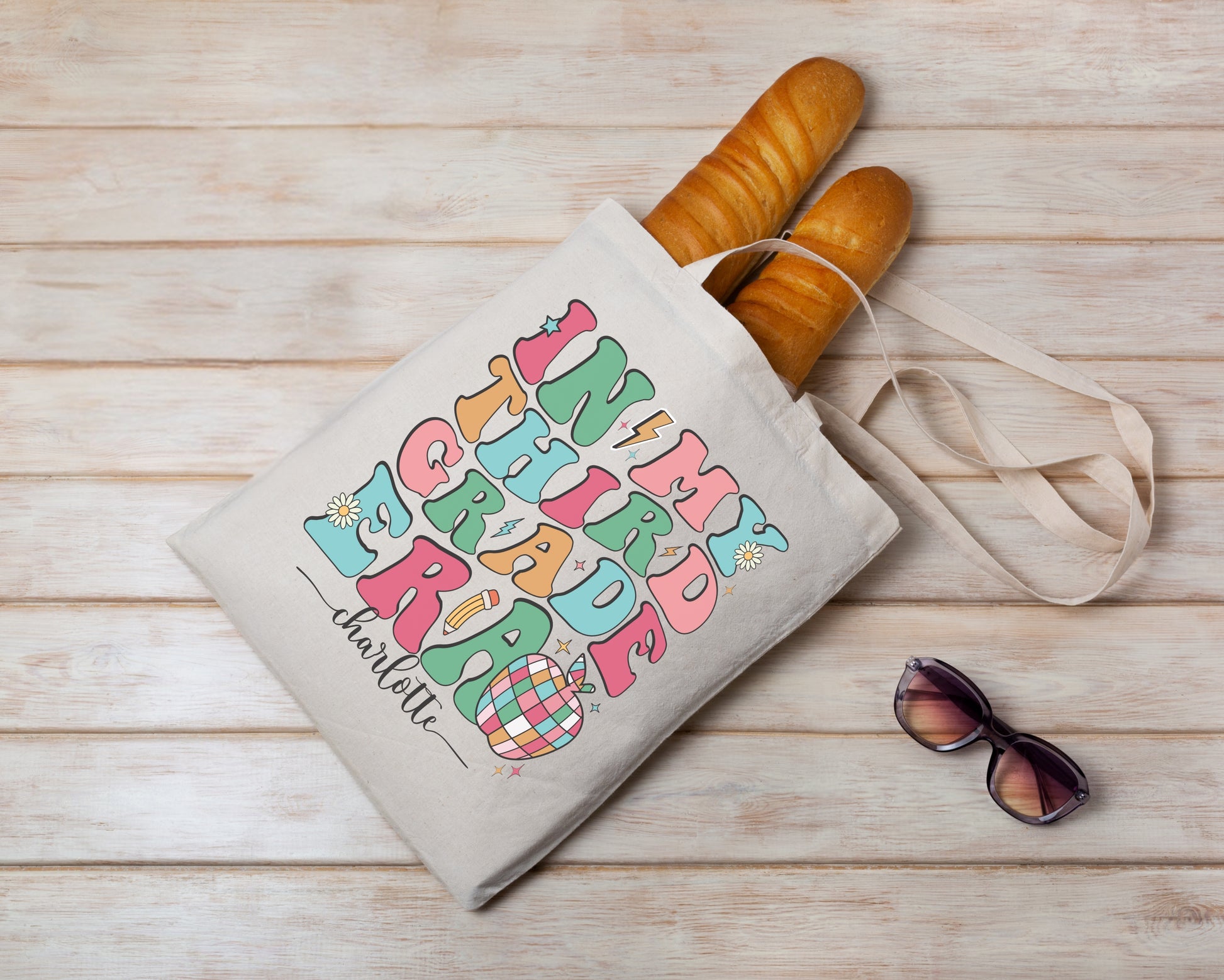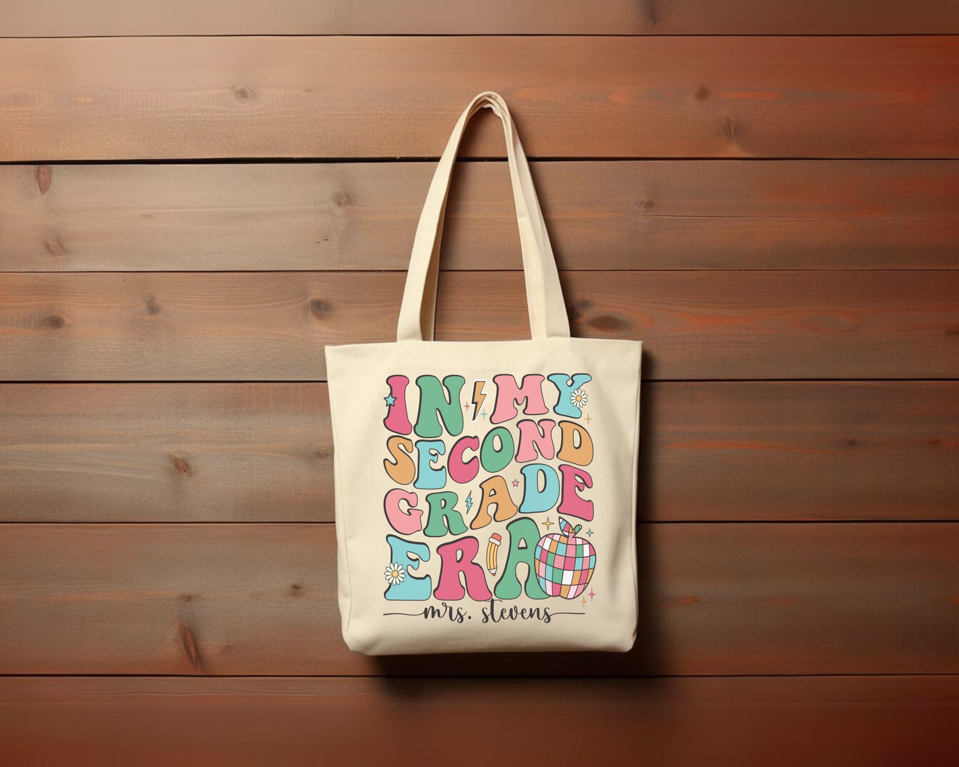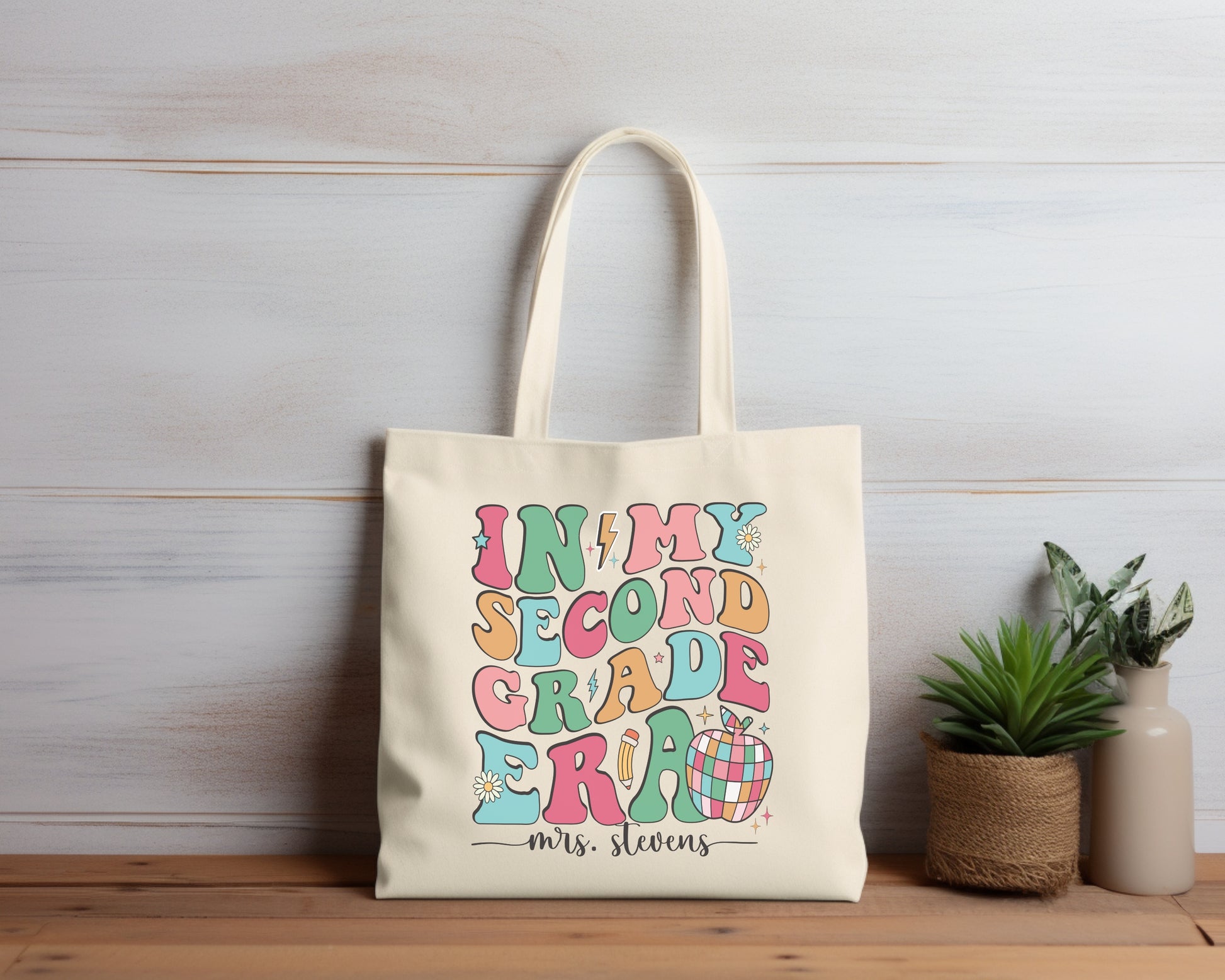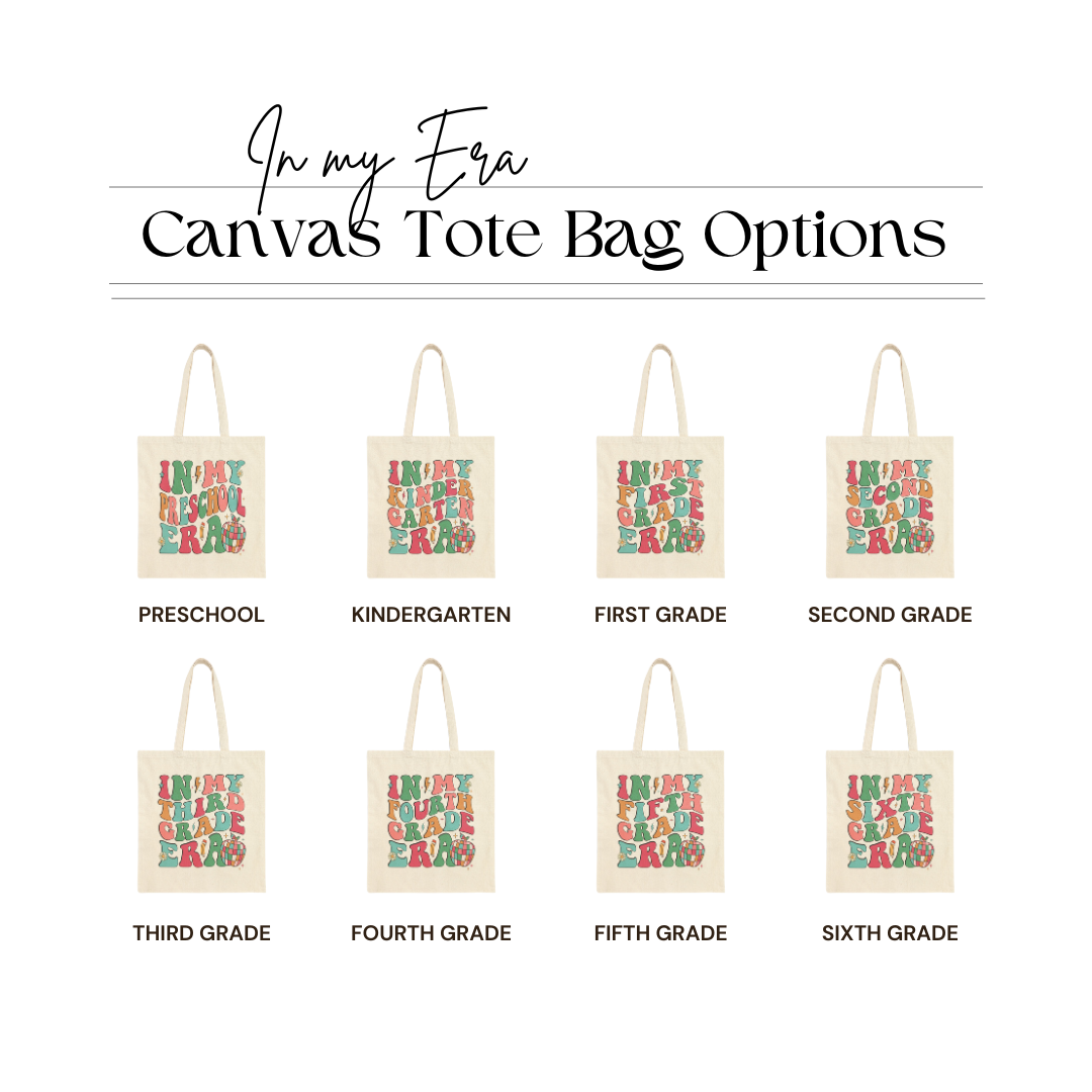 Add a touch of retro fun to this school year with our "In My Era" tote bag! Available in 8 vibrant options for preschool through 6th grade, this playful bag can be personalized with a name for a unique touch. Perfect for students and teachers alike, it’s a great gift that combines style and practicality, ensuring school supplies stay organized and chic. Whether for the special student in your life heading back to school or as a surprise for a favorite teacher, this personalized tote bag is sure to brighten any academic journey.