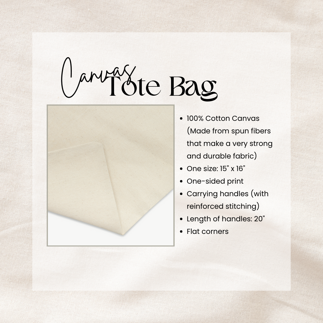 This durable 100% cotton canvas tote bag is a must-have for everyday use. With a spacious 15" x 16" size and strong 20" handles, it’s perfect for carrying everything from groceries to books or adding a touch of style to your daily look. The sturdy canvas construction ensures it will stand up to regular use while looking great.