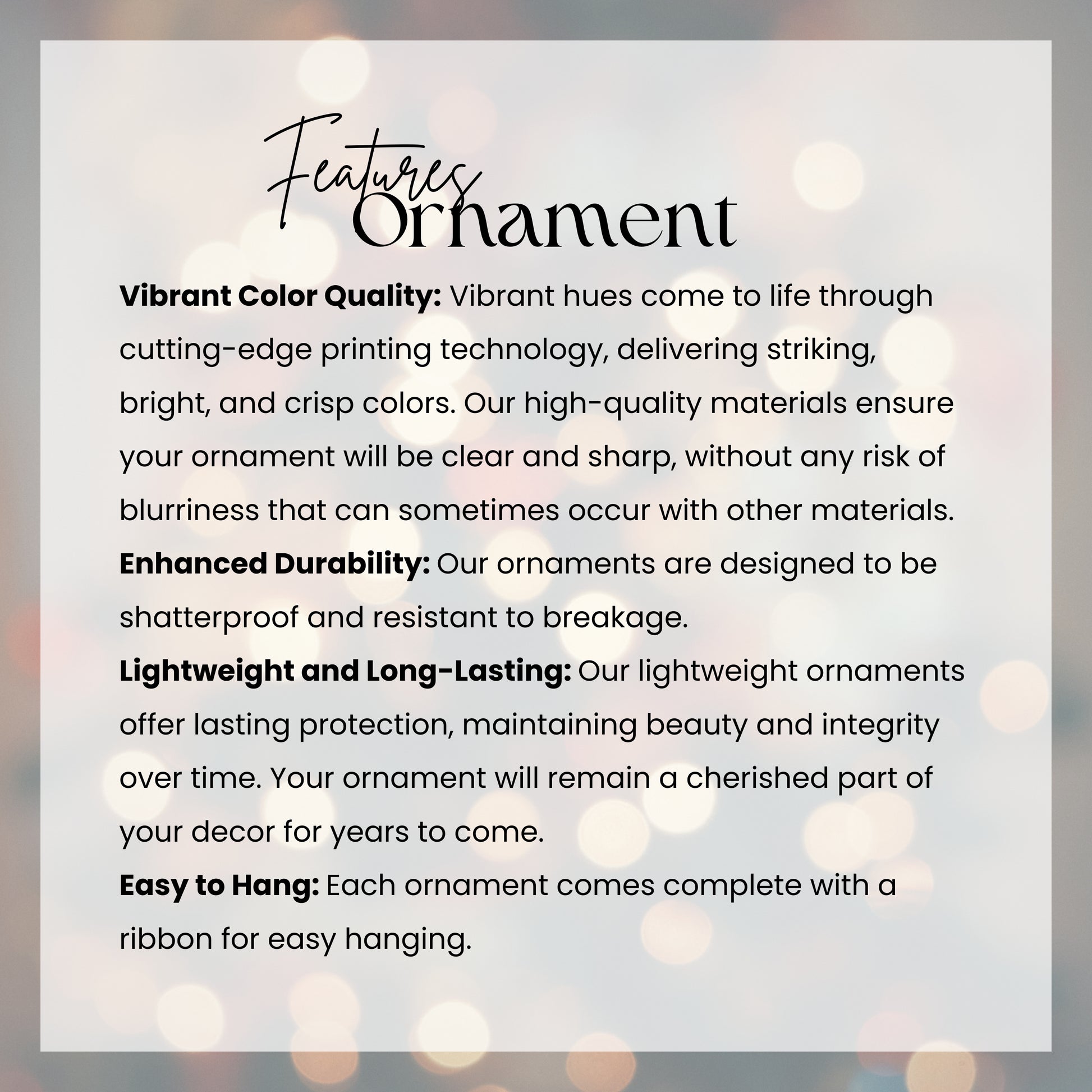 Vibrant Color Quality: Vibrant hues come to life through cutting-edge printing technology, delivering striking, bright, and crisp colors. Our high-quality materials ensure your ornament will be clear and sharp, without any risk of blurriness that can sometimes occur with other materials.