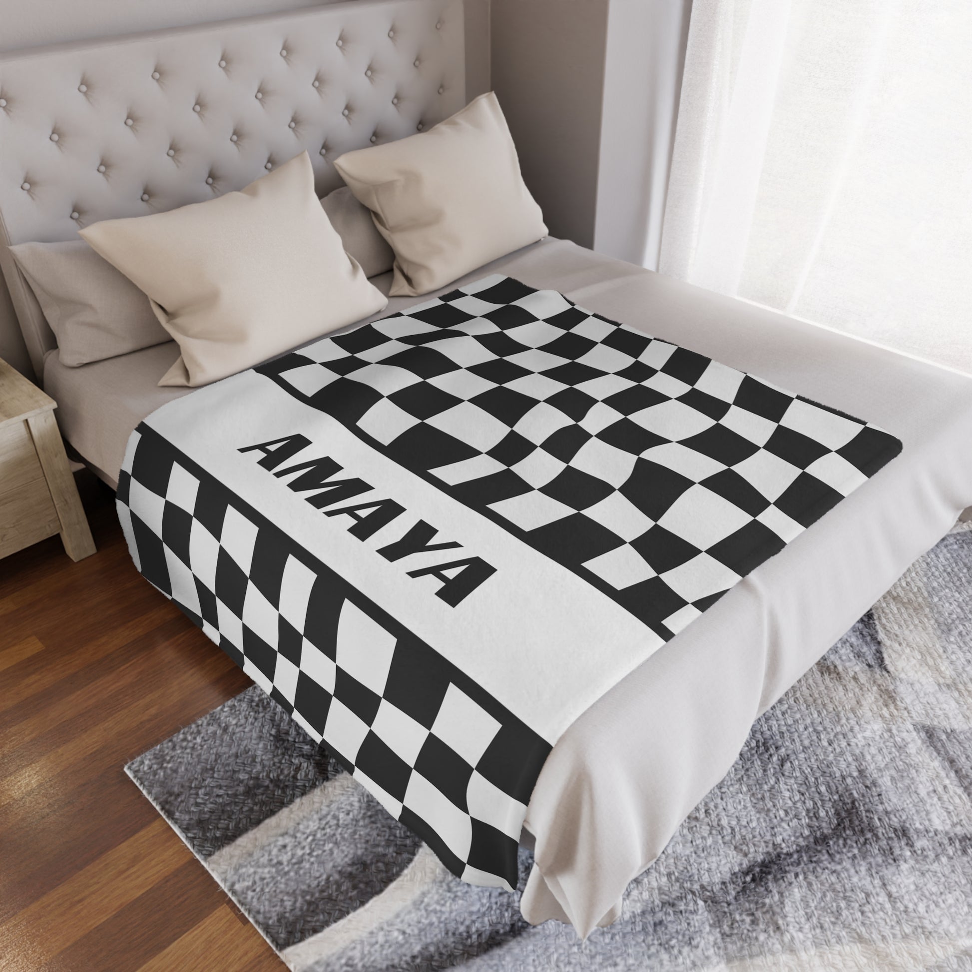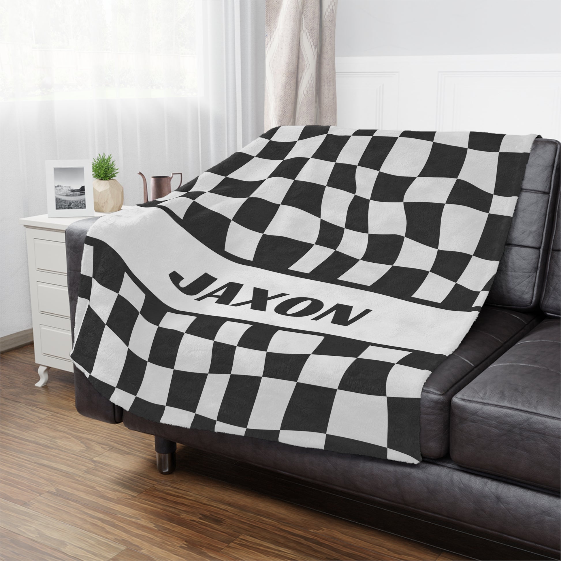 Ignite Your Passion with Our Personalized Race Blanket! Featuring a bold black and white checkered design, this blanket is where speed meets style. It's more than just gear; it’s a powerful statement of your adventurous spirit. Whether you're watching the race, hanging out with friends, or just unwinding, this blanket keeps you warm and ready for action. Add a name for a personal touch that makes it truly yours. It’s the ultimate gift for race fans who live life in the fast lane, perfect for birthdays, holidays, or any special occasion. Impress any motorsport enthusiast with this standout piece!