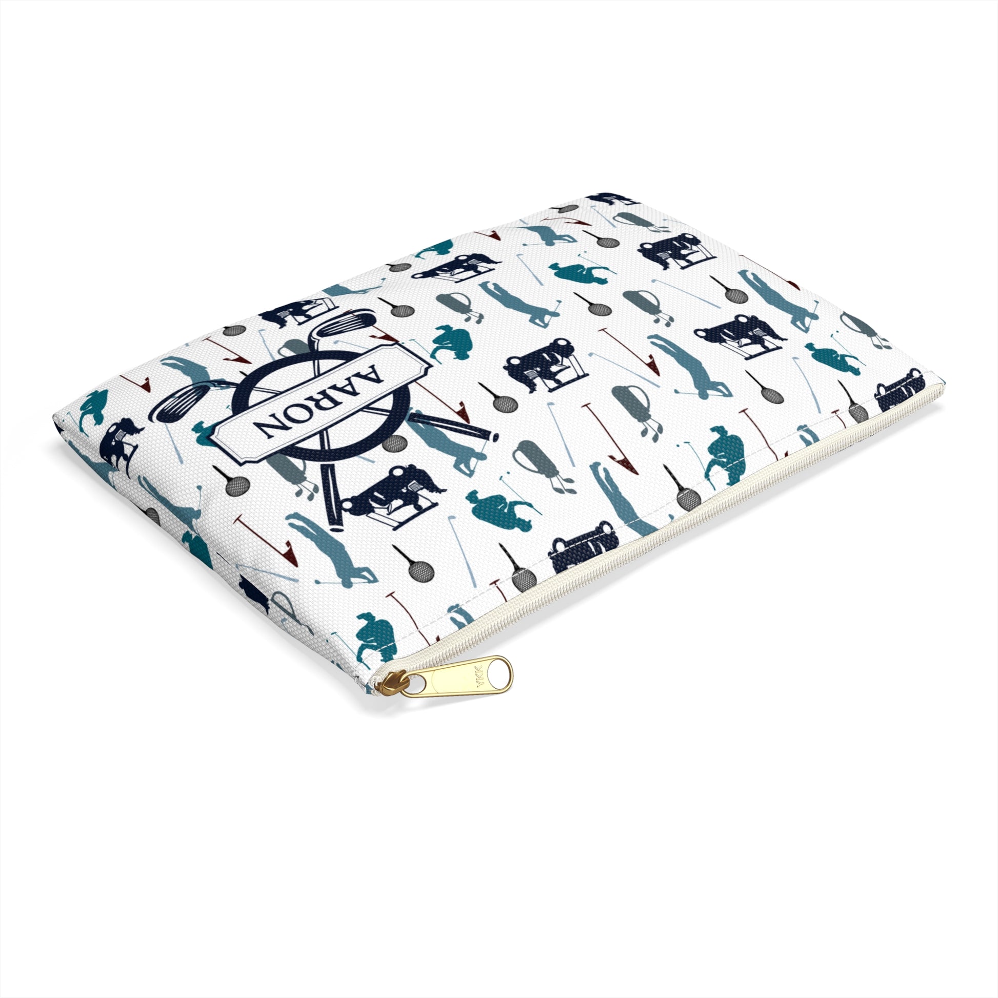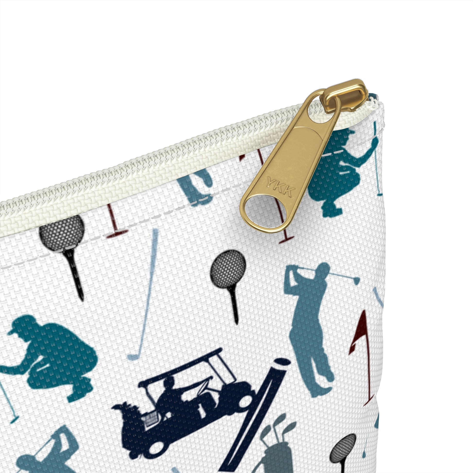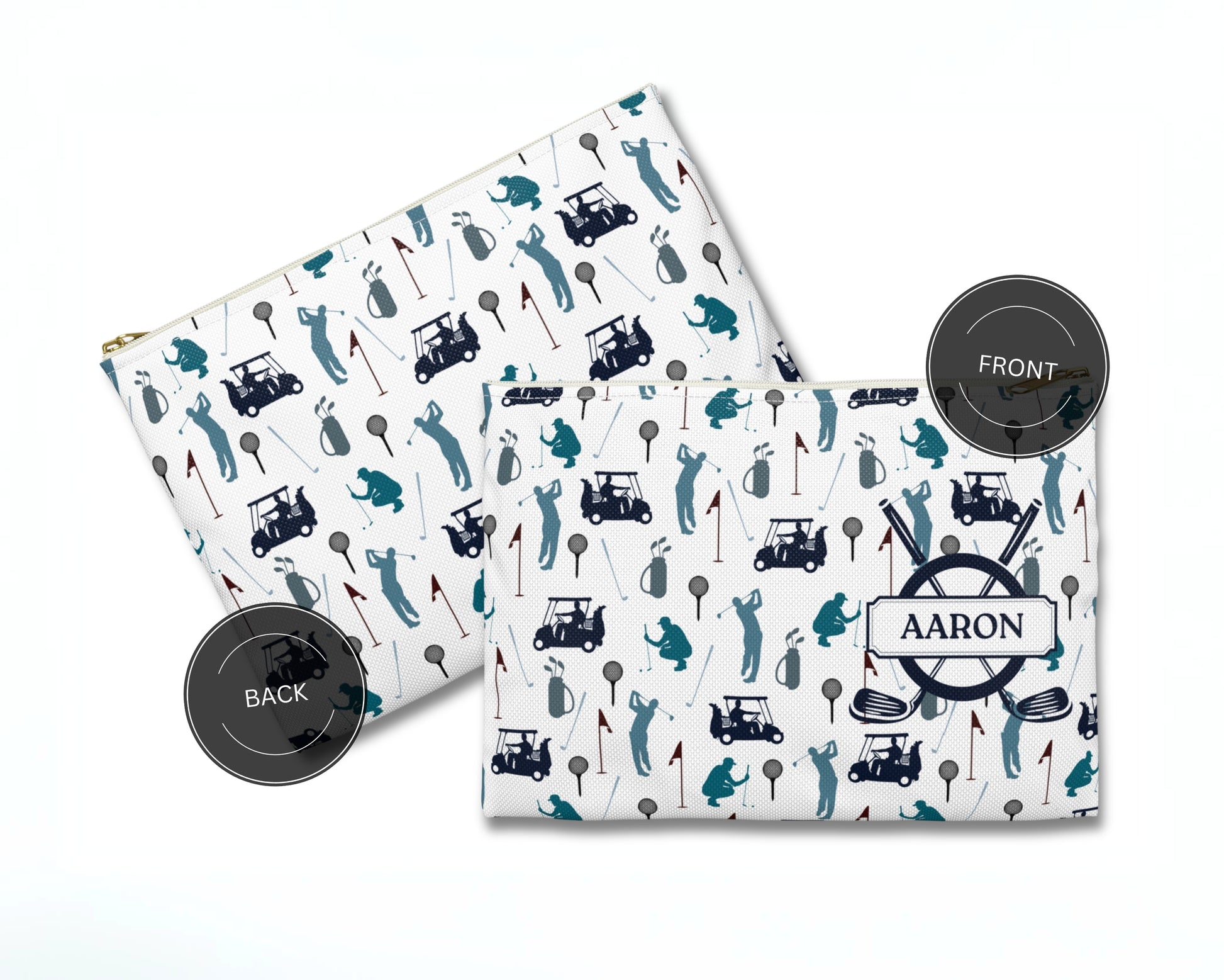 Stay on par with our personalized golf accessory case, perfect for organizing chargers, travel essentials, school supplies, or everyday items. Featuring classic golf icons, this versatile zipper pouch delivers both function and fairway flair. Whether traveling, heading to the course, or keeping things organized at home, it makes a thoughtful gift for golfers, coaches, or fans, ideal for birthdays, holidays, or team celebrations. Personalize it with a name or initials for a one-of-a-kind case they’ll be proud to carry on and off the course.