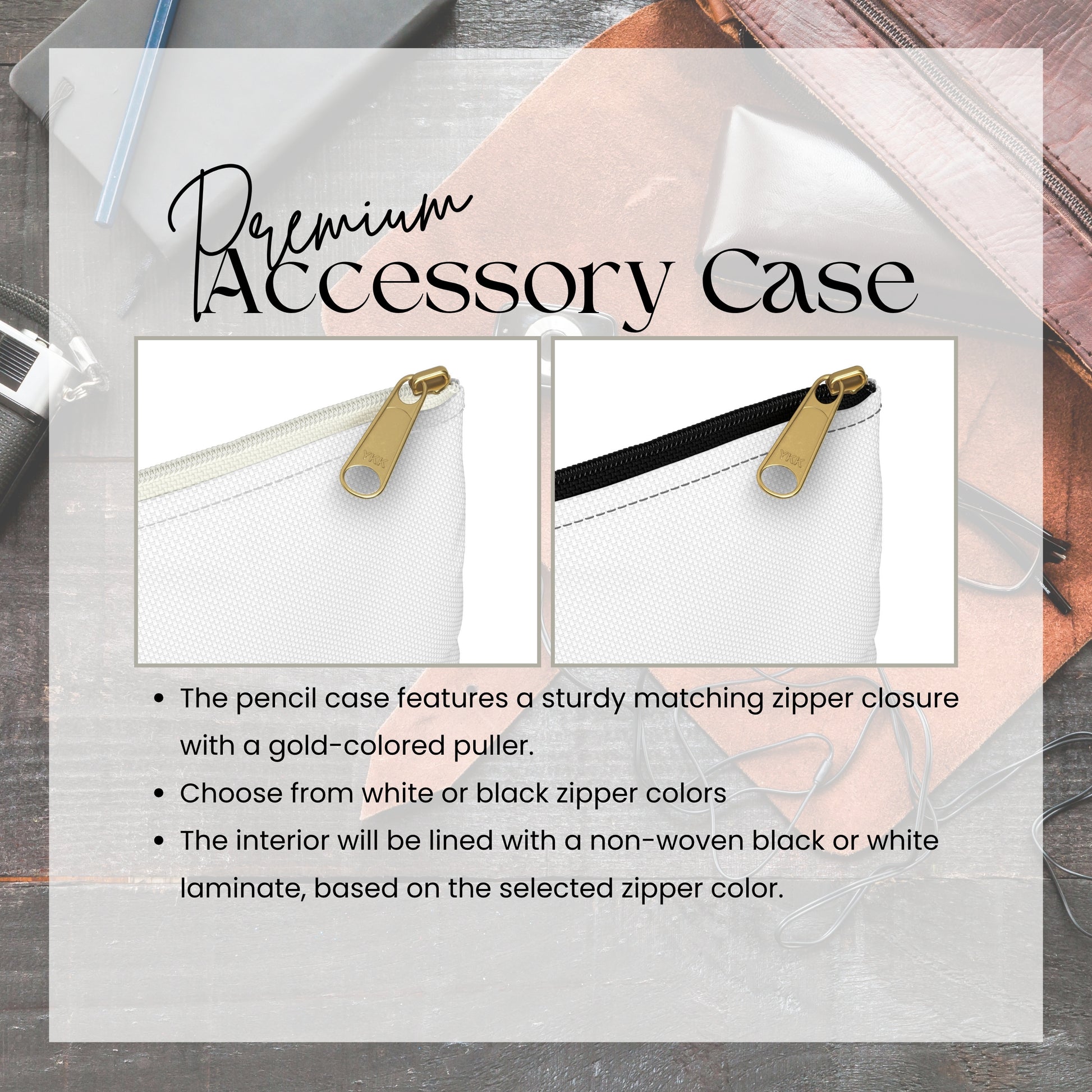 This high-quality case is the perfect blend of style and practicality. Made from 100% durable polyester, it features a sturdy zipper closure with a chic gold puller. Available in two sizes, this versatile accessory offers ample space for all your essentials. The strong, shape-retaining polyester fabric enhances both the aesthetic and tactile experience, making it a stylish and reliable companion for your daily adventures.