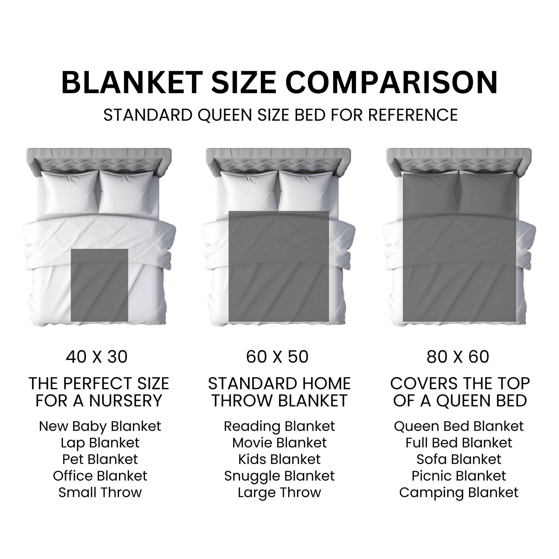 - Available in 2 sizes: 50" × 60", 60" × 80"