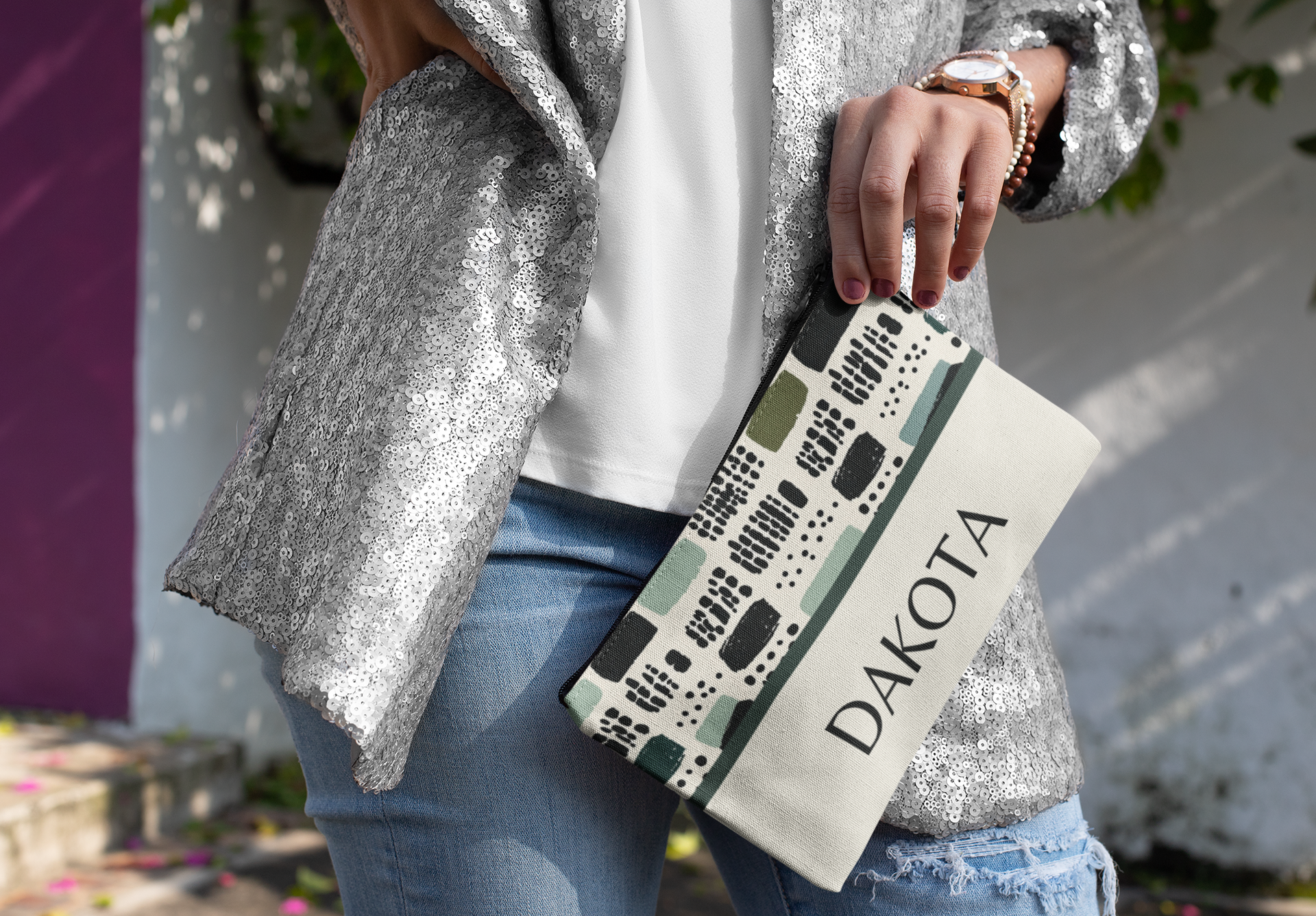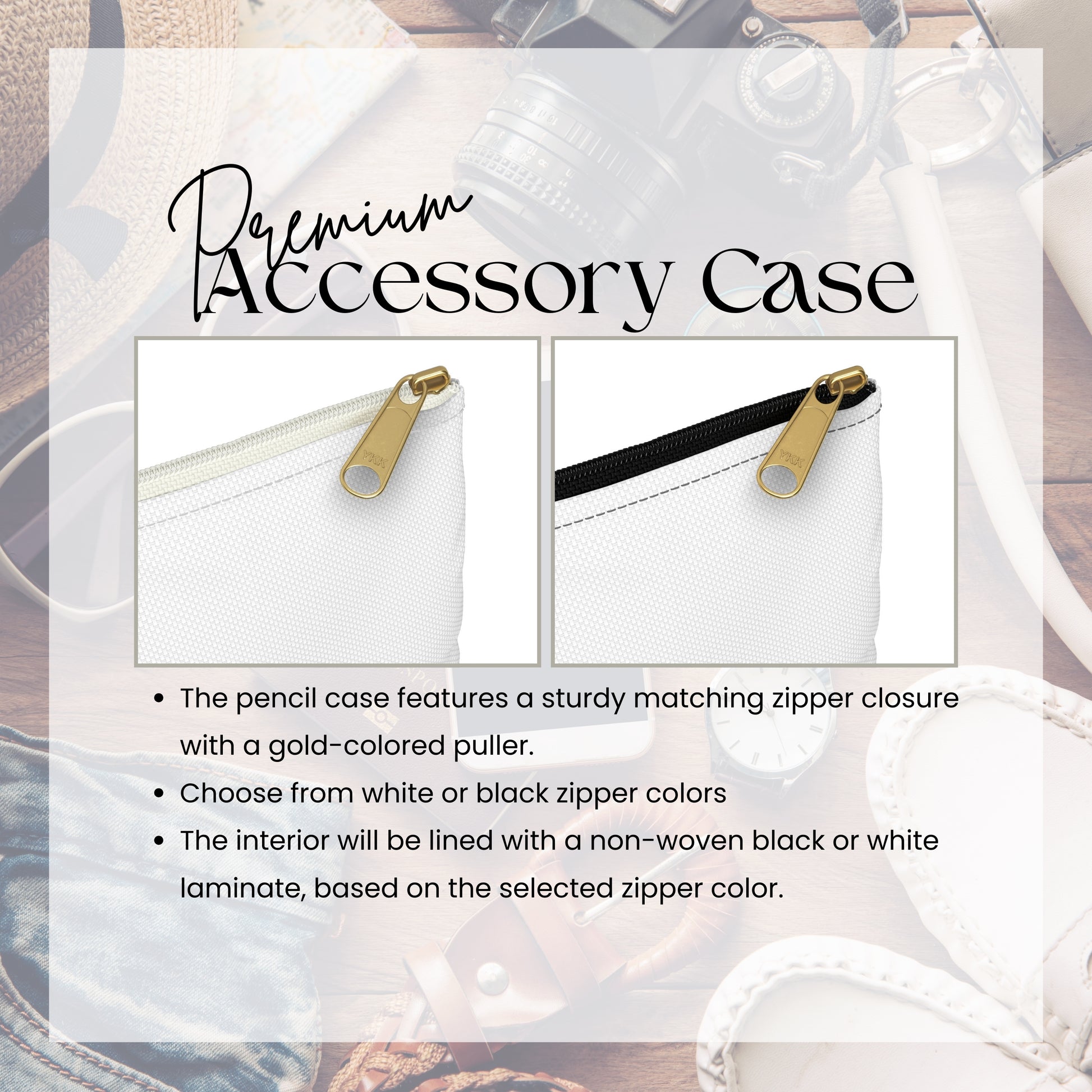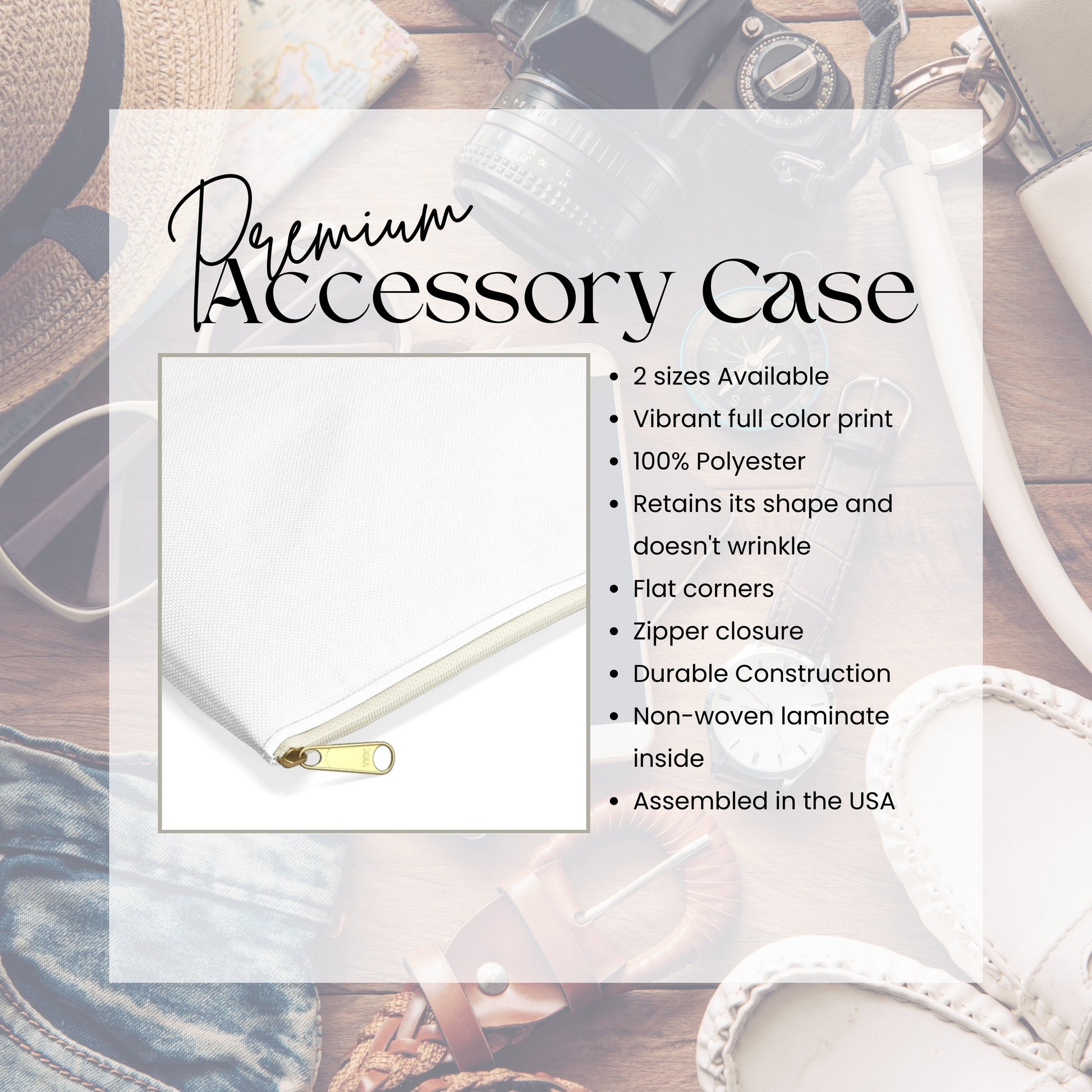 This high-quality case is the perfect blend of style and practicality. Made from 100% durable polyester, it features a sturdy zipper closure with a chic gold puller. Available in two sizes, this versatile accessory offers ample space for all your essentials. The strong, shape-retaining polyester fabric enhances both the aesthetic and tactile experience, making it a stylish and reliable companion for your daily adventures.