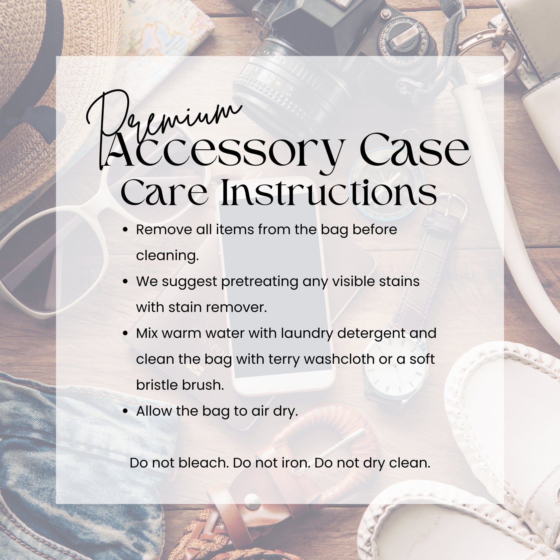Remove all items from the bag before cleaning. To protect the life of your tote bag, we recommend mixing warm water with laundry detergent and cleaning the bag with terry washcloth or a soft bristle brush. We suggest pretreating visible stains with stain remover. Once cleaned, let the bag air dry.