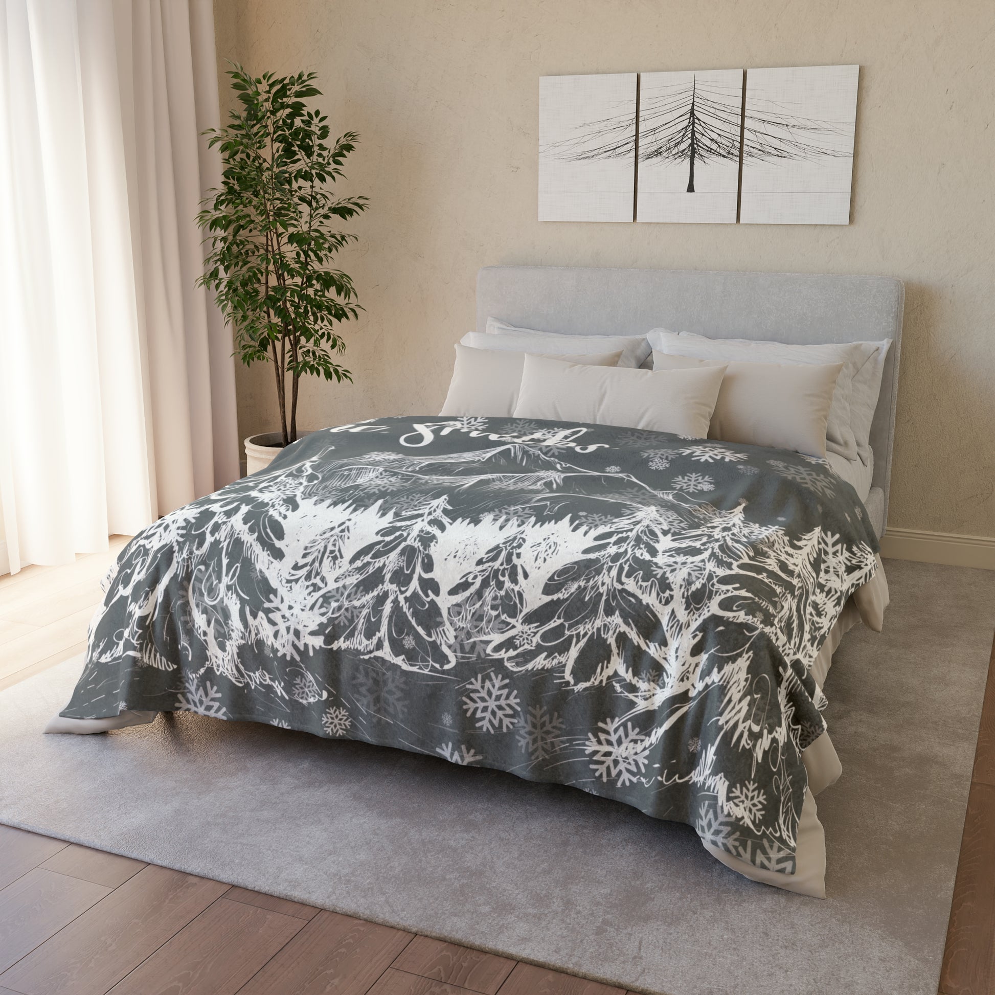 This graphic-designed blanket comes in two cozy materials: velveteen plush and fleece sherpa. The velveteen option provides a smooth, soft feel, while the fleece sherpa offers a warm, plush texture. Available in multiple sizes, these blankets are perfect for snuggling and add a touch of style to any room.