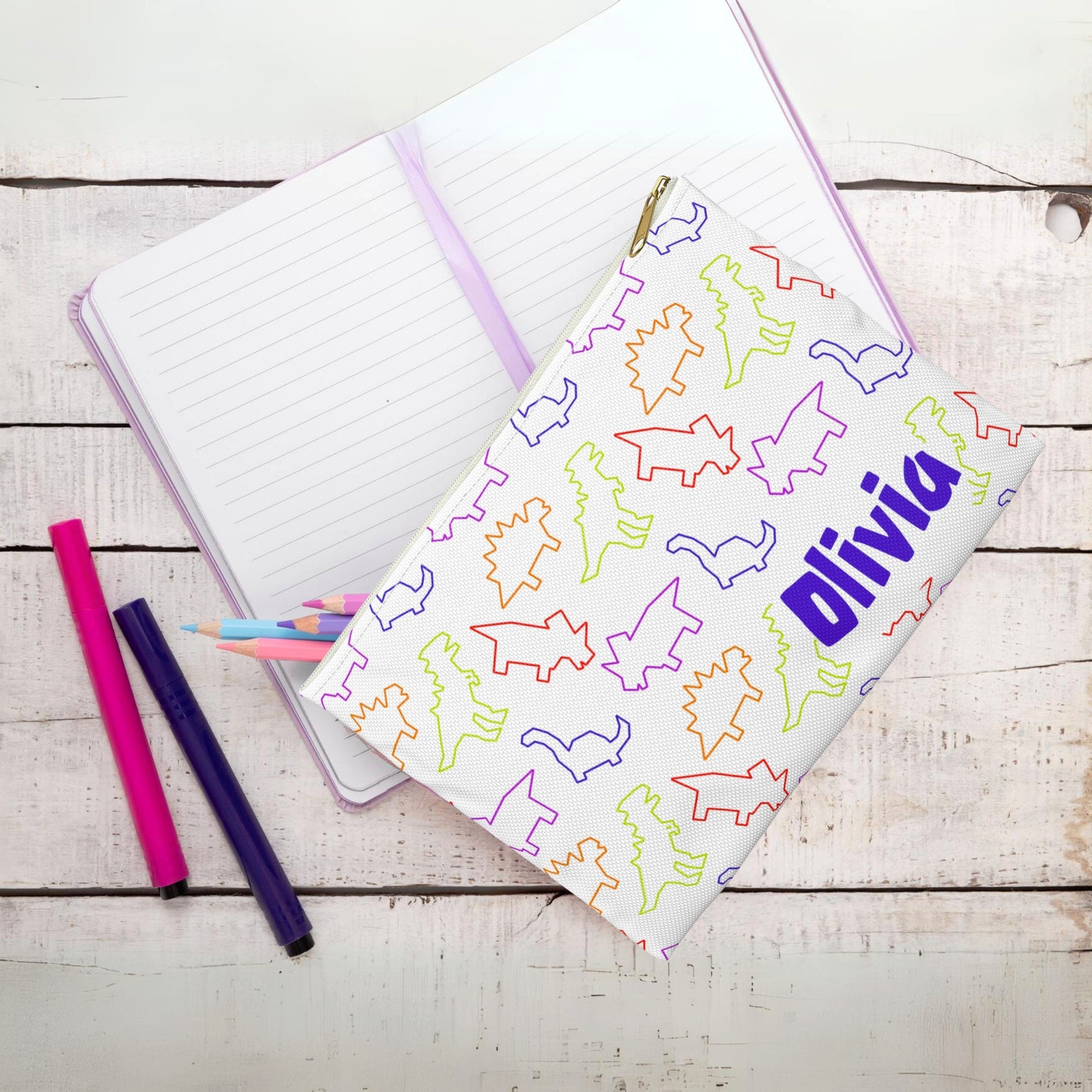 Make the day a little more epic with our custom dinosaur pencil case, packed with prehistoric style and personalized just for them. Add a name to make it roar with personality! This fun and functional zipper pouch makes a great gift for dino lovers, perfect for school supplies, travel essentials, or everyday organization.