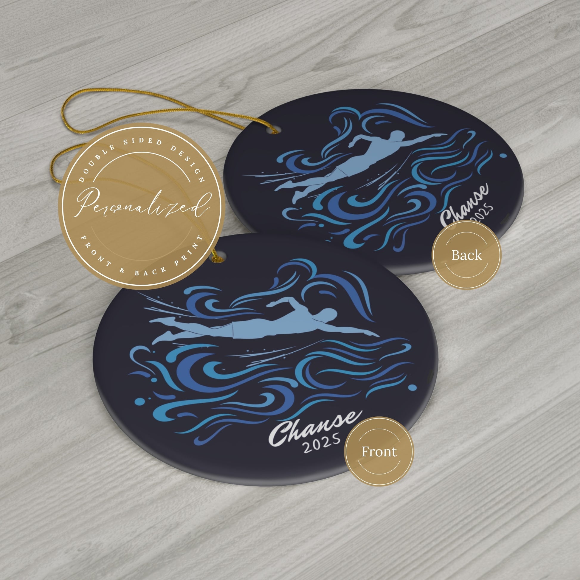 Celebrate the swimmer in your life with a personalized ornament that makes a perfect keepsake for any swimmer or diver. Available in two styles, it can be customized with a name and year to mark milestones or team memories. A thoughtful gift for a swim team, coach, or senior, and the perfect stocking stuffer, this ornament is a meaningful way to recognize their dedication and achievements. A great choice for anyone searching for unique swimmer gift ideas.