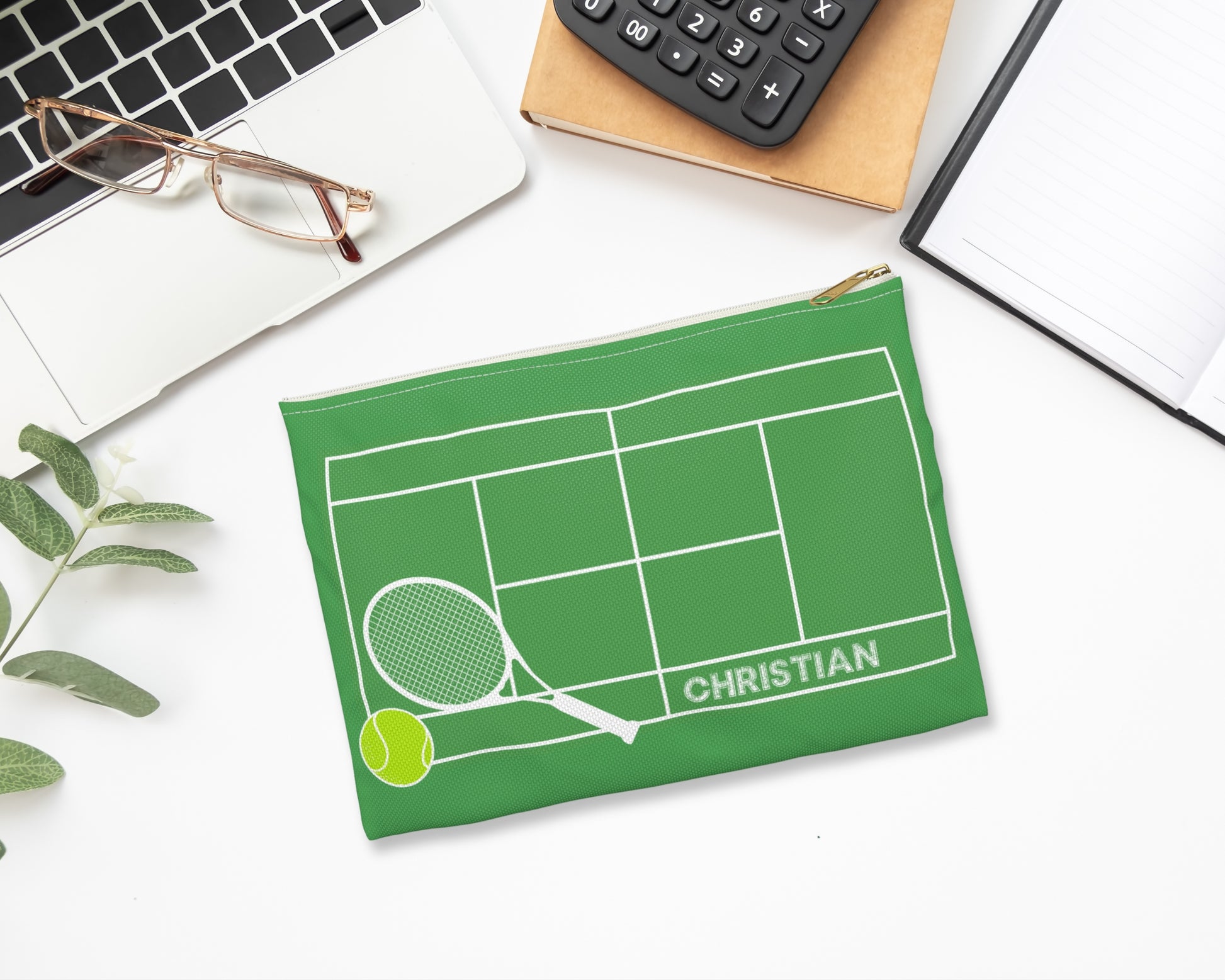 Serve up some style with our personalized tennis accessory pouch, perfect for pencils, chargers, or everyday essentials. Whether they’re heading to school, practice, or packing for a weekend tournament, this versatile zipper pouch is as practical as it is fun. Add a name and optional number to make it uniquely theirs. A thoughtful gift for tennis players, fans, or anyone who loves time on the court, perfect for birthdays, back-to-school surprises, team celebrations, or even stocking stuffers. Use it as a pencil holder, school supply organizer, or compact travel bag for life on the go.
