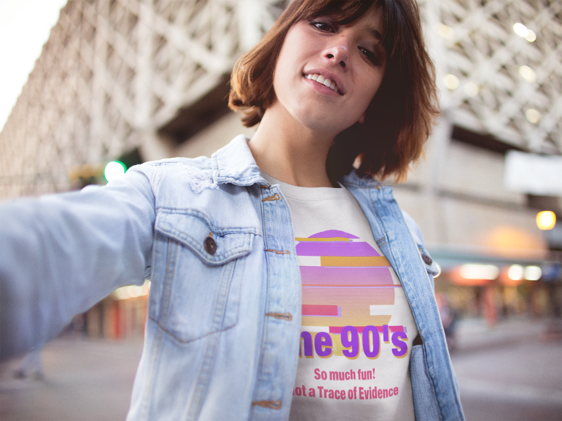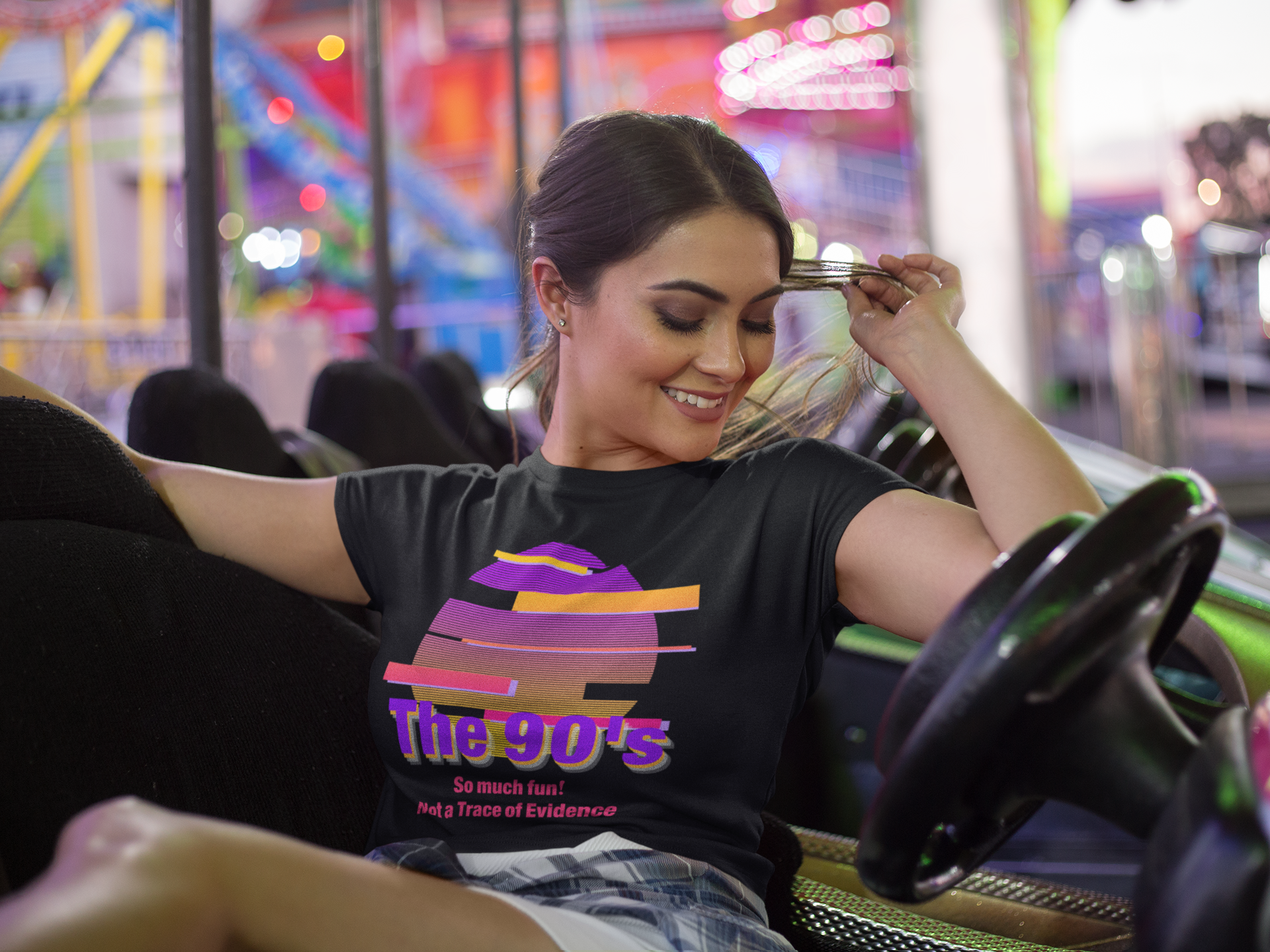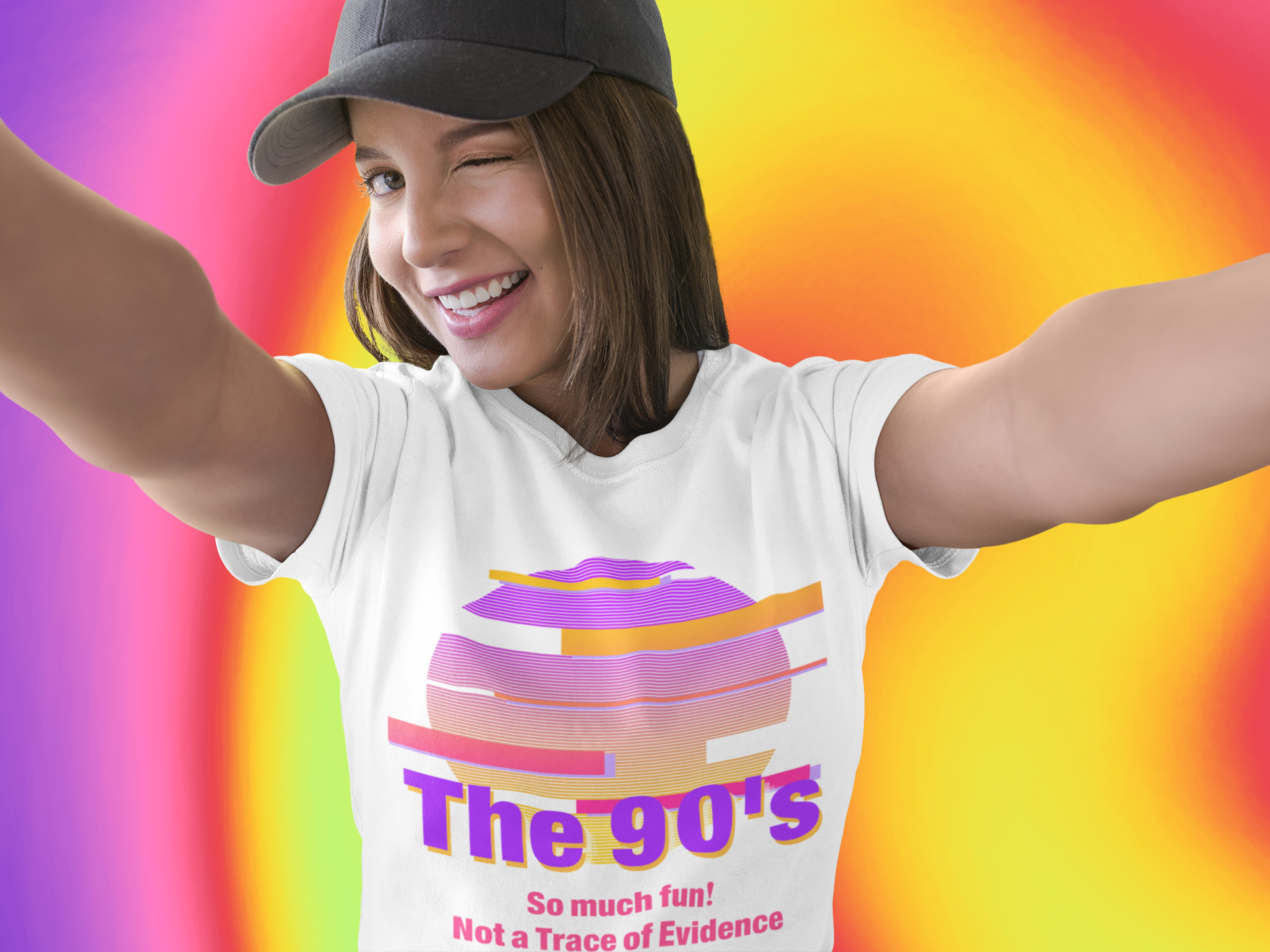 This shirt features the phrase, "The 90's. So much fun, not a trace of evidence," perfect for anyone who remembers the carefree days of their youth.