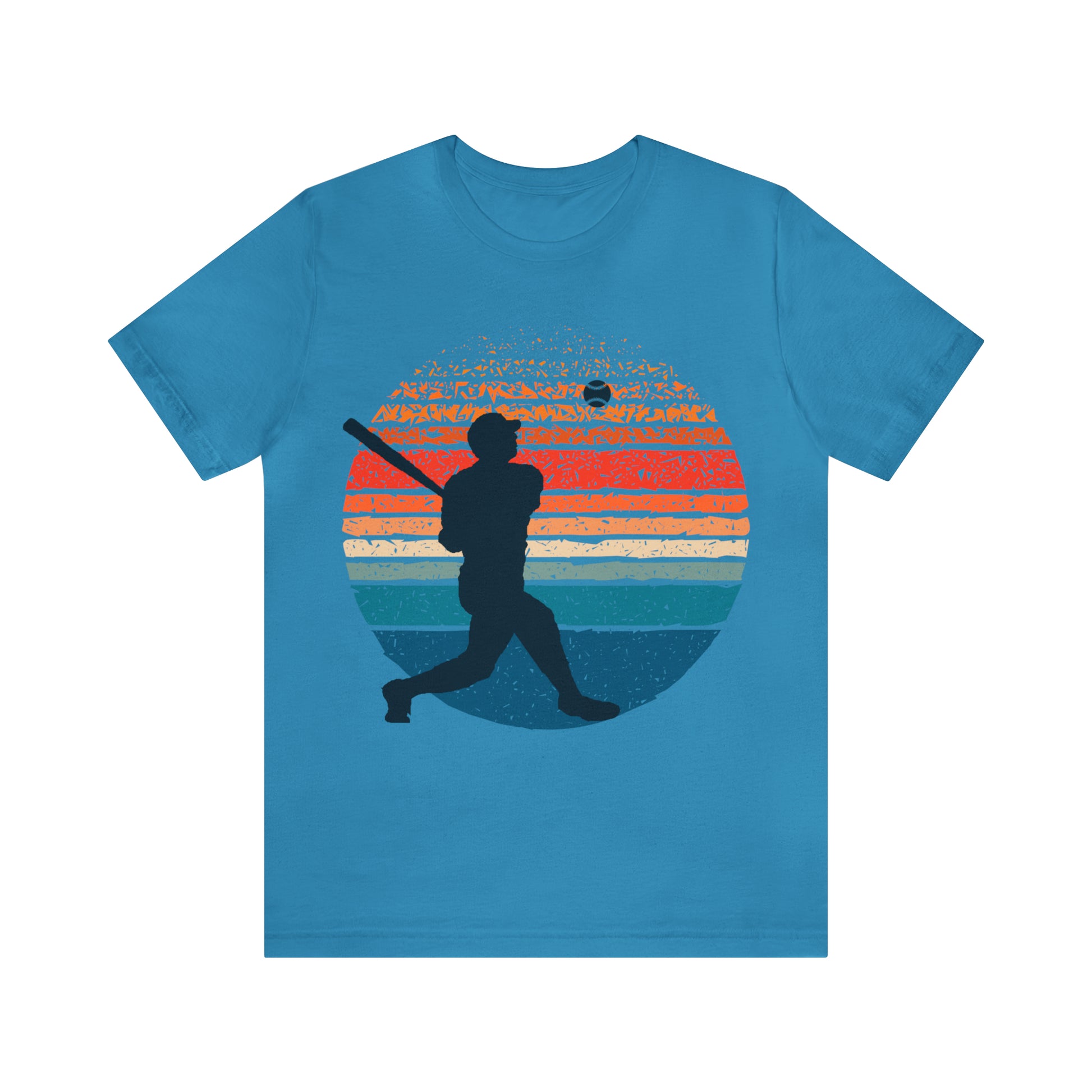 Unleash your inner baseball enthusiast with our captivating retro sunset baseball graphic t-shirt! The mesmerizing design features a breathtaking sunset backdrop and a silhouette of a baseball player hitting a ball. It captures the essence of the game in an artistic masterpiece. This shirt is more than just a garment; it's a canvas for self-expression and appreciation of the beauty of baseball. Crafted with care, it promises to elevate your style game while sparking conversations about your love for baseball.