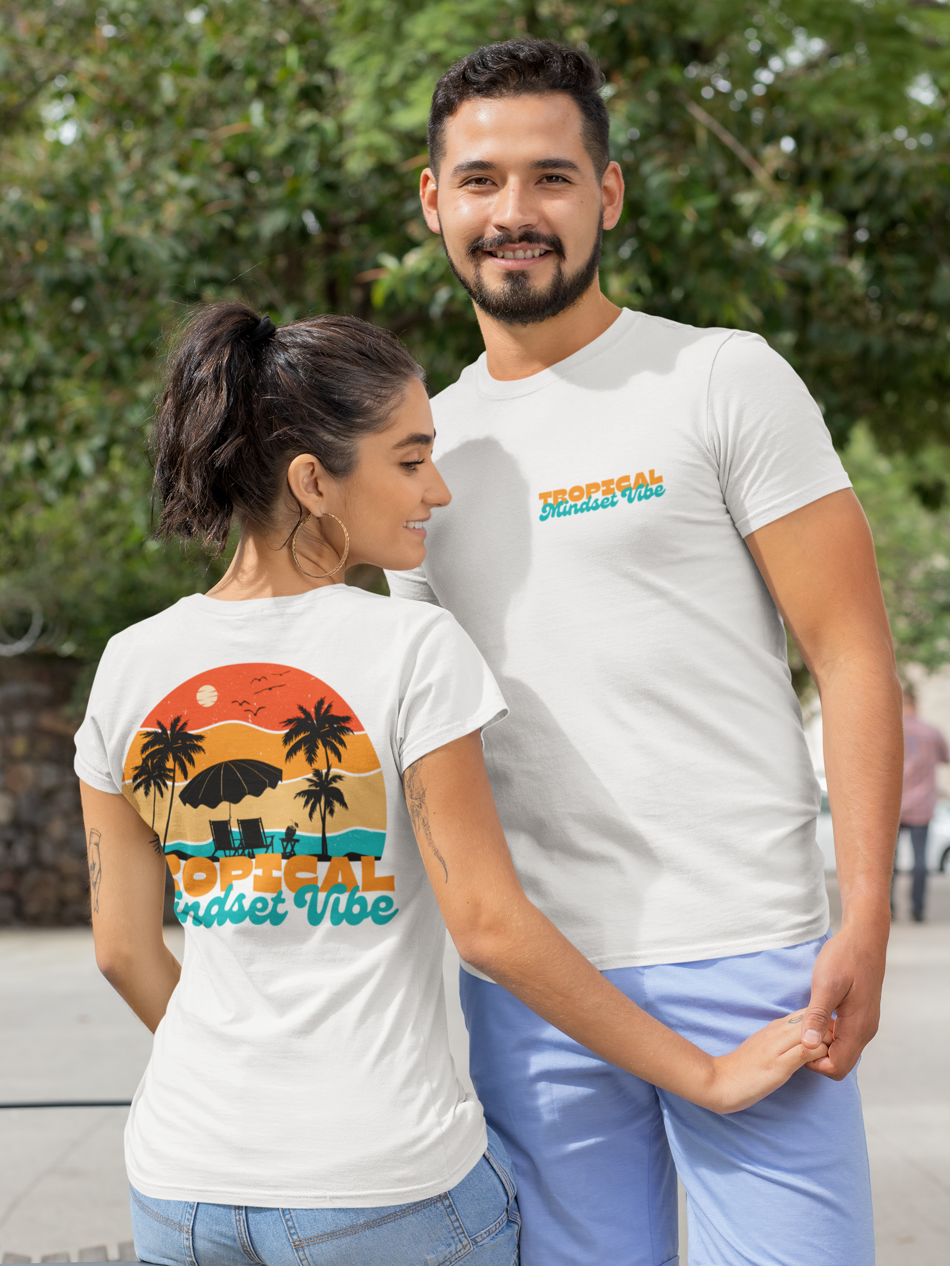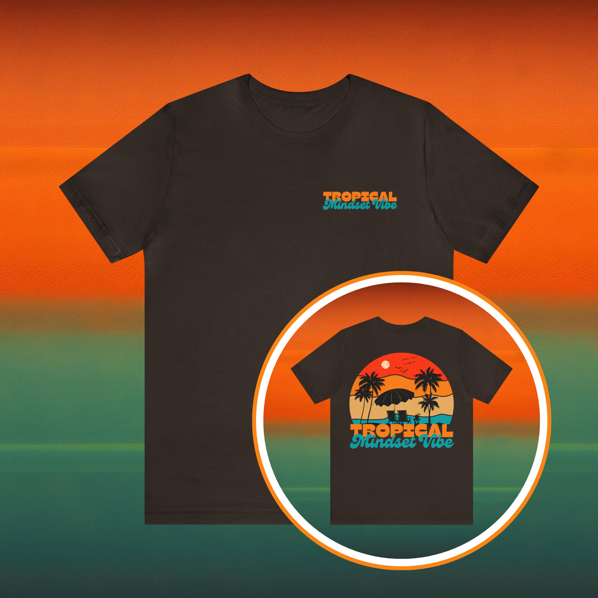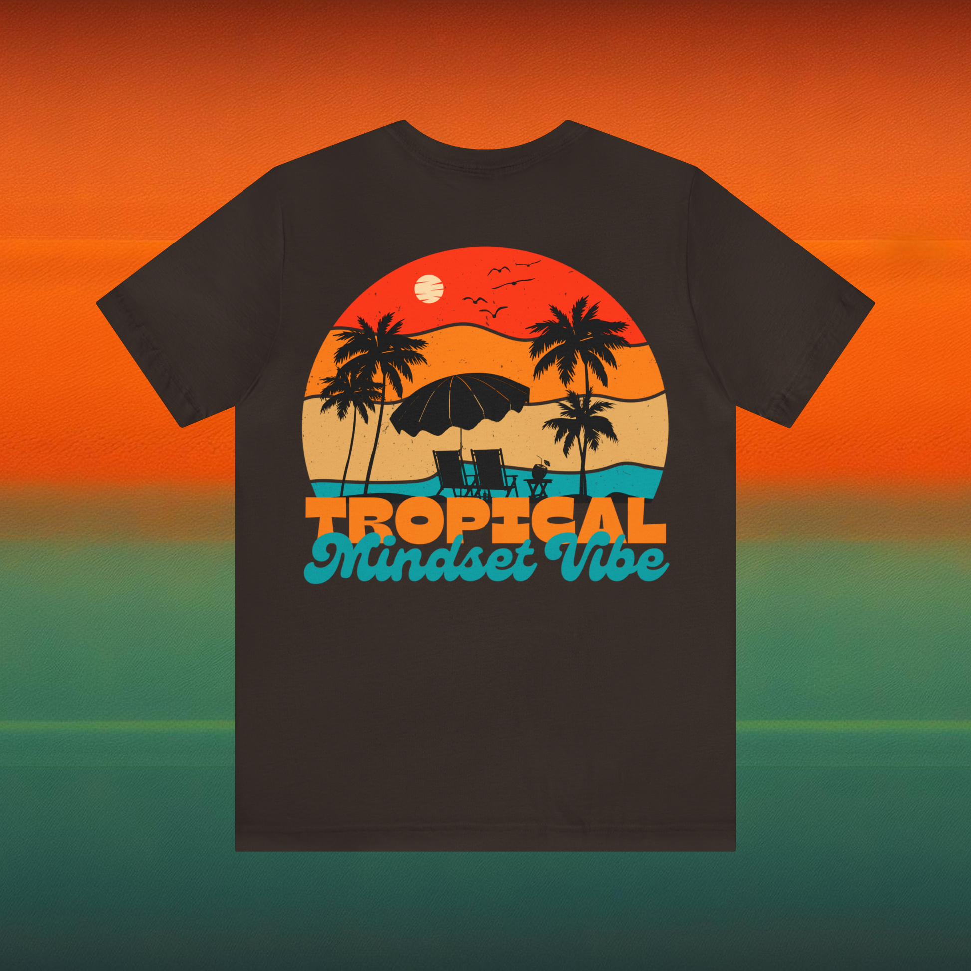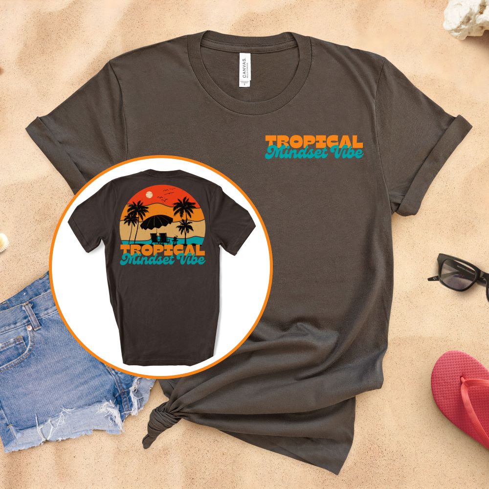 Unwind and let the "Tropical Mindset Vibe" t-shirt transport you to a serene beachside retreat. Imagine sinking your toes into the warm sand, surrounded by chairs perfectly positioned to soak in the breathtaking sunset. Feel the positive energy radiate from this tee as it encapsulates the essence of a tropical paradise. Let the calming ambiance and good vibes wash over you, reminding you to slow down and savor every moment. Embrace the tropical mindset and let your cares be carried away on the gentle waves of pure bliss.